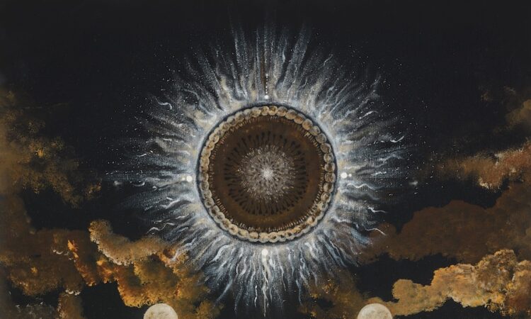 La cover annonce clairement la couleur. Portée par une palette chaude, elle dévoile un soleil stylisé entouré de trois lunes, flottant dans un ciel de nuages ocres. Une imagerie plus onirique qu’à l’accoutumée, qui marque un tournant visuel pour Equilibrium, longtemps associé à des artworks denses aux accents industriels. Ici, tout converge vers l’essence même de Equinox : un retour à la symbolique, à l’équilibre et à la dimension cosmique du projet.