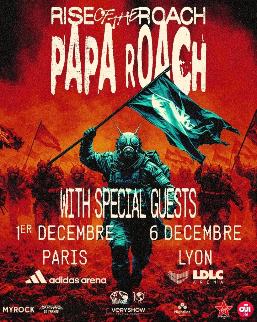 Papa Roach retrouvera le public français en fin d’année 2026 pour deux rendez-vous très attendus. Le groupe californien se produira le 1er décembre à l’adidas arena de Paris, avant de filer du côté de la LDLC Arena de Lyon-Décines le 6 décembre !