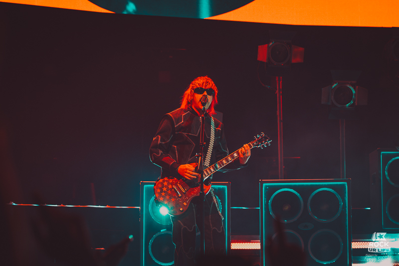 C’est de nouveau un groupe anglais qui prend possession de la scène. L’introduction, pensée comme un clin d’œil au jeu vidéo avec ses annonces façon “player one…“, installe immédiatement une ambiance ludique. En fond de scène, un mur de baffles et d’amplificateurs Marshall, personnalisés au nom du groupe, affirme une esthétique rock frontale.