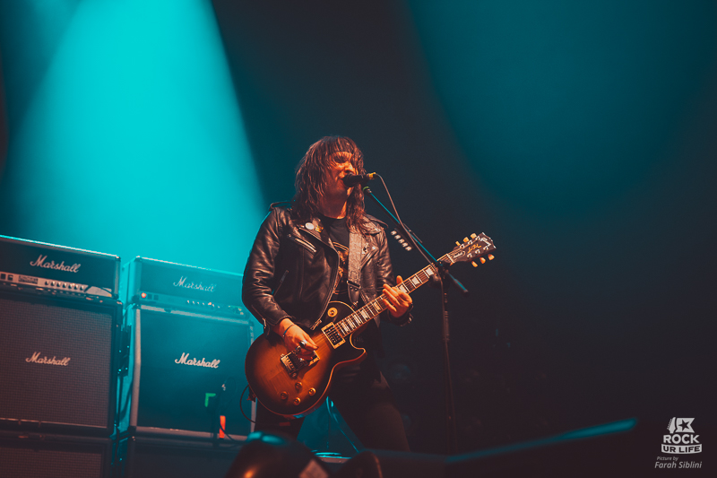 “Fat City”, “Cradle To The Grave” font monter la pression. “Hungry” fait littéralement bouillir le parterre, et l’énergie ne faiblira pas un instant, ni sur scène ni en fosse. Sur “Raise The Flag”, Joel O’Keeffe se jette sur les épaules d’un de ses techniciens et se rend au centre de la marée humaine du Zénith pour un solo endiablé. Sans oublier de prendre le temps de check un spectateur ravi et d’éclater une canette sur sa tête, dans une hystérie rock n’roll pure. “Cheap Wine & Cheaper Women” prolonge la transe, avec ses chœurs portés par des milliers de voix éraillées. Les gobelets, eux, continuent de fuser.