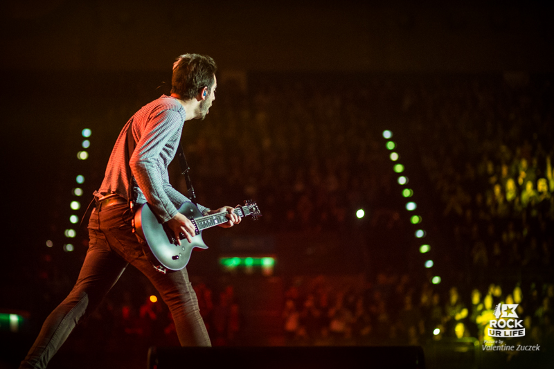 Le début de set d’AGAINST THE CURRENT se fait timide. “Running With The Wild Things” a pourtant du potentiel, mais la grande salle est encore froide, et le groupe n’a pas l’air très sûr de savoir où il a débarqué. “Talk” et “Forget Me Now” les voient peu à peu s’enhardir; il semble de plus en plus évident que la majorité du public n’est pas venu pour eux, mais n’est pas pour autant complètement imperméable à leur musique. Le jeu de scène est nettement moins naturel que la première fois à Paris, devant des fans déjà conquis. Toutefois, il est agréable de voir que si les compères étaient légèrement décontenancés à leur entrée, ils ne se laissent pas abattre, et n’hésitent pas à mettre les bouchées doubles pour faire réagir la fosse. Les guitaristes traversent finalement la scène, Chrissy s’aventure sur l’estrade du milieu, même Will s’adresse à l’audience : ça prend plus de temps que prévu et ça n’est pas simple, mais Against The Current se fait entendre. La petite foule se réveille lentement et commence à s’agiter, réagit en un éclair lorsque la formation entame leur reprise de “Uptown Funk”, et reprend les singles “Outsiders” et “Gravity” en choeur, pour un final qui nous rappelle que le combo a quand même une fanbase pas si nombreuse ce soir, mais bien établie par ailleurs. Les musiciens ne sont peut-être pas encore de taille pour jouer dans des arènes, mais il ne leur manque qu’un peu d’expérience et de temps pour transformer une performance sympathique en réel spectacle.