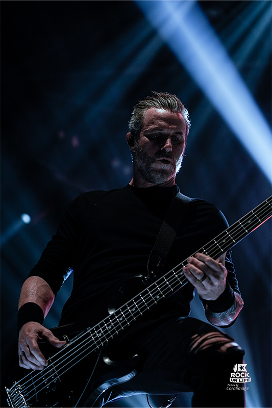 “Addicted To Pain”, avec son riff d’intro saturé de distorsion, explose dans la foule qui se met immédiatement en mouvement. Puis “Cry Of Achilles”, et son début de guitare sèche capte l’attention de la salle en un instant. Les morceaux d’Alter Bridge sont non seulement d’une efficacité redoutable, mais ils transpirent aussi une maîtrise technique sans faille. Intemporels, les refrains résonnent et l’auditoire scande avec ferveur : “Don’t close your eyes, something beautiful is still alive“.