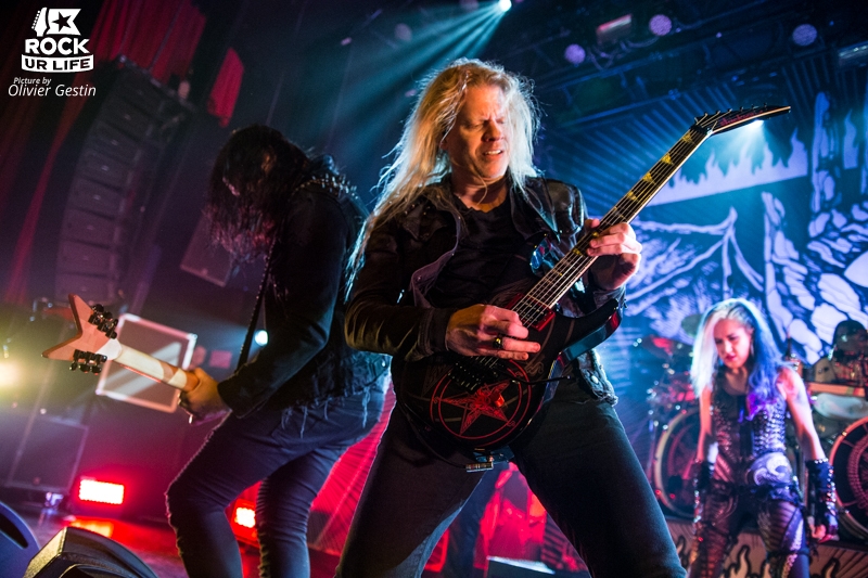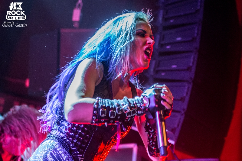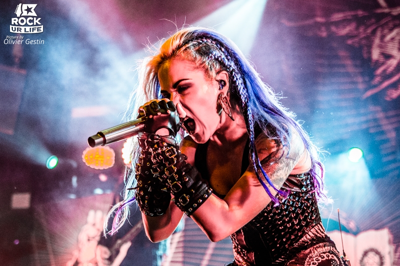 Le Bataclan est enfin prêt à accueillir ARCH ENEMY, lorsque les lumières s’éteignent et le légendaire “Ace Of Spades” résonne dans toute la salle noire de monde. Les musiciens s’installent à leur place respective pendant que “Set Flame To The Night” fait office d’intro. Ni une, ni deux, les Suédois nous envoient un son lourd et puissant avec “The World Is Yours”, premier single de “Will To Power” sorti en septembre dernier. Alissa White-Gluz prend alors possession de la scène sous un tonnerre de cris des fans du premier rang. Bien qu’elle n’ait rejoint le groupe que depuis quatre ans, la belle aux cheveux bleus a su séduire le public. Et quand on constate la puissance mais également la justesse de sa voix, on en vient à penser qu’elle n’a rien à envier à Angela Gossow, ex-leadeuse d’Arch Enemy. Le petit plus ? Elle nous parle français pendant tout le show. Seul bémol ? La Canadienne abandonne la scène et ses compagnons pendant “My Apocalypse”, et réapparait seulement à la fin du morceau. Heureusement, Michael Amott et ses amis n’en démordent pas, et continuent le show. Alissa vient par la suite s’excuser en expliquant qu’elle ne s’entendait pas.