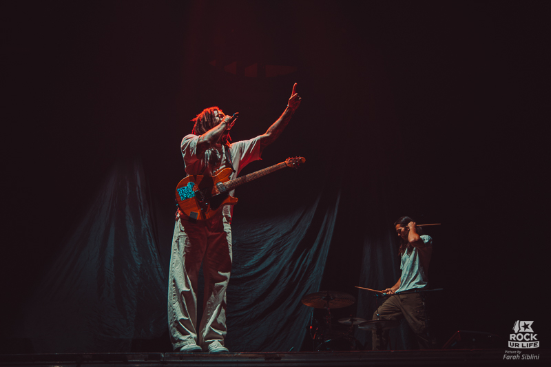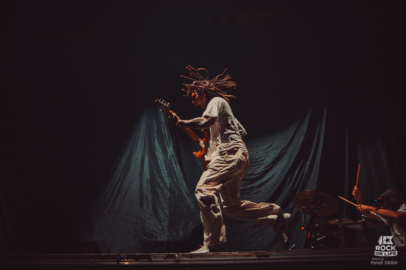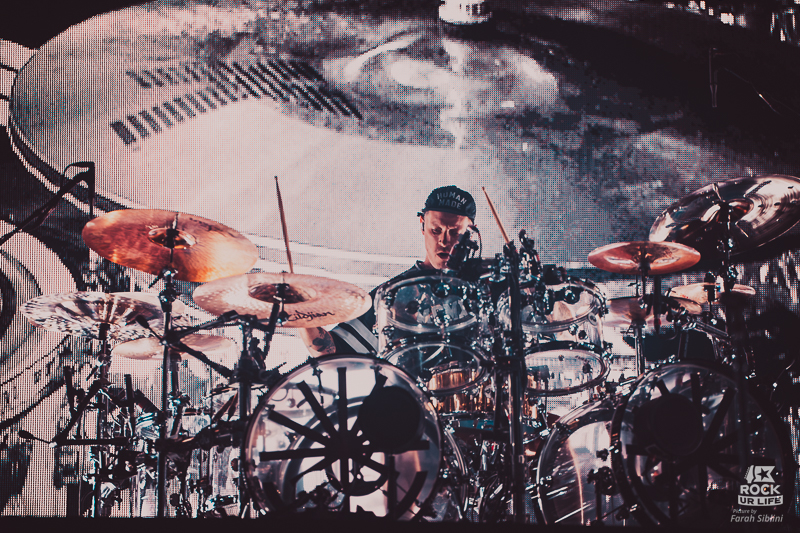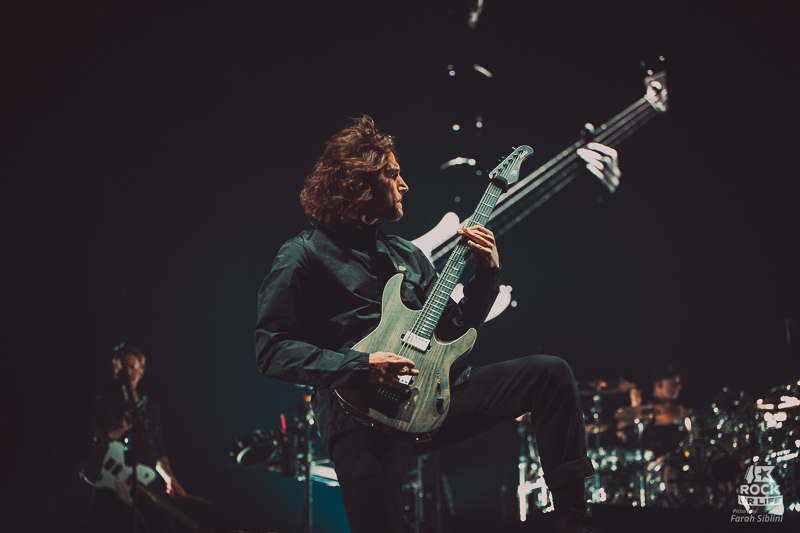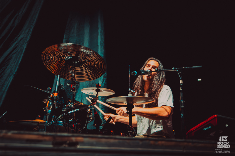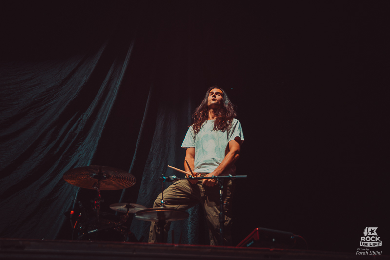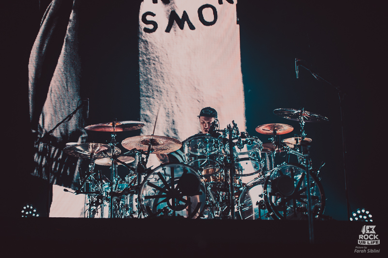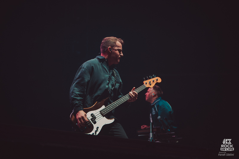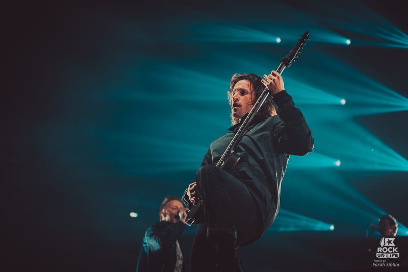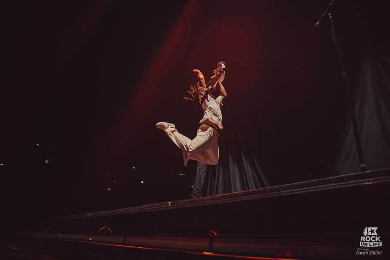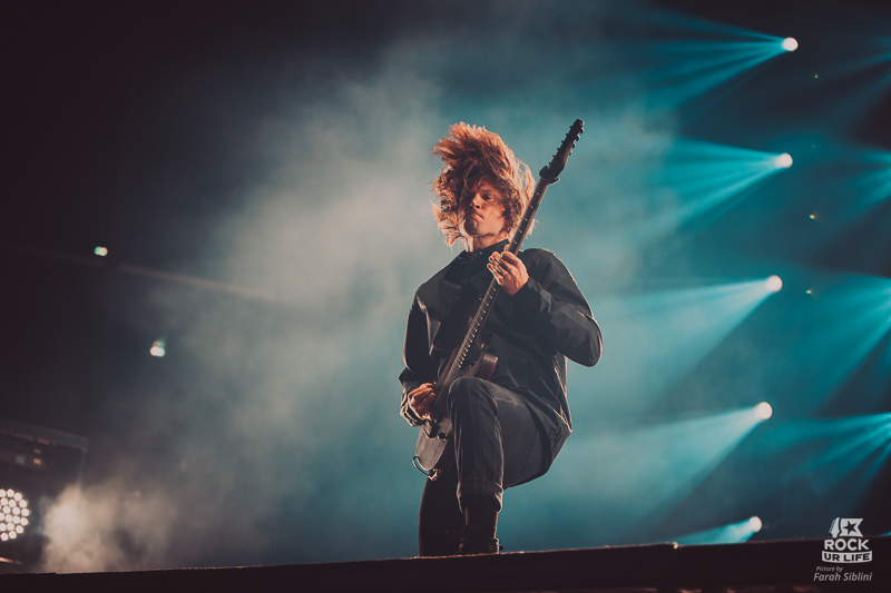 De retour sur scène pour “Afterlife” le groupe déroule un show survolté. Seulement deux et situé à chaque extrémité du plateau, les musiciens occupent parfaitement l’espace. Et pas un centimètre de scène n’aura été foulé. Du praticable en avant-scène aux baffles Orange jusqu’à la grosse caisse d’Improta. Ce dernier, batteur surdoué que l’on imagine biberonné aux performances de Travis Barker, ne tient pas plus en place que son acolyte. Il finira carrément par donner les baguettes à un membre du staff pour aller rejoindre Stephen sur le catwalk et livrer une version survoltée de l’irrésistible “Godspeed”.