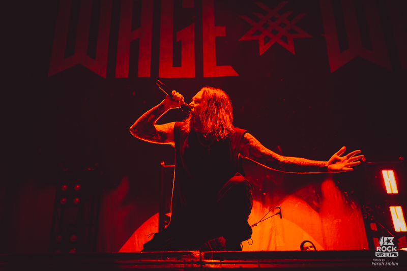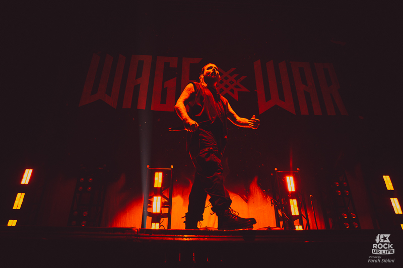Vingt minutes plus tard, la salle continue de se remplir timidement et se masse dans la fosse. Les lumières s’éteignent. Prêt à en découdre, WAGE WAR fait son entrée. Accompagnés par l’intro martiale de “TOMBSTONE” on sent vite que le groupe n’est pas là pour enfiler des perles. Toutefois, et certainement dû au grand écart de style et d’attitude avec House Of Protection, l’auditoire ne se met que timidement dans l’ambiance.