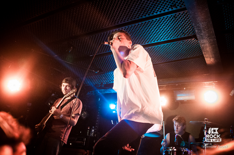 Après ces deux amuse-bouches, place au petit protégé d’Hopeless Records. Juste le temps d’un changement de plateau rapide et c’est parti pour TROPHY EYES. Venus défendre leur dernier disque “Mend, Move On”, les cinq camarades punks ne sont pas là pour la rigolade. A part peut être quand le frontman se trompe de première partie à remercier, confondant Trash Boat avec ROAM. Mais, à par cet écart, les musiciens australiens en auront dans le ventre afin de confirmer leur place en tant qu’headliner. Même si musicalement, on se trouve dans un domaine pop punk assez commun, avec un jeu assez focalisé sur les powerchords, ce qui se dégage et fascine le plus est bien la technique de chant de John Floreani. Plus que ravageur, le jeune homme semble vivre chaque mot qu’il prononce avec profondeur et sincérité. Et ce ne sont pas les problèmes techniques qui l’écarteront de sa course à la bonne prestation, comme le montre son micro crépitant, vite remplacé. Plus associable au punk qu’à la pop, Trophy Eyes finira donc par faire sensation aux vues des hochements de tête et des applaudissements en fin de set. On en aurait voulu plus !