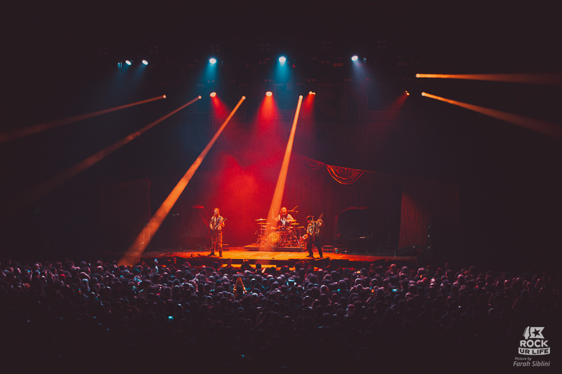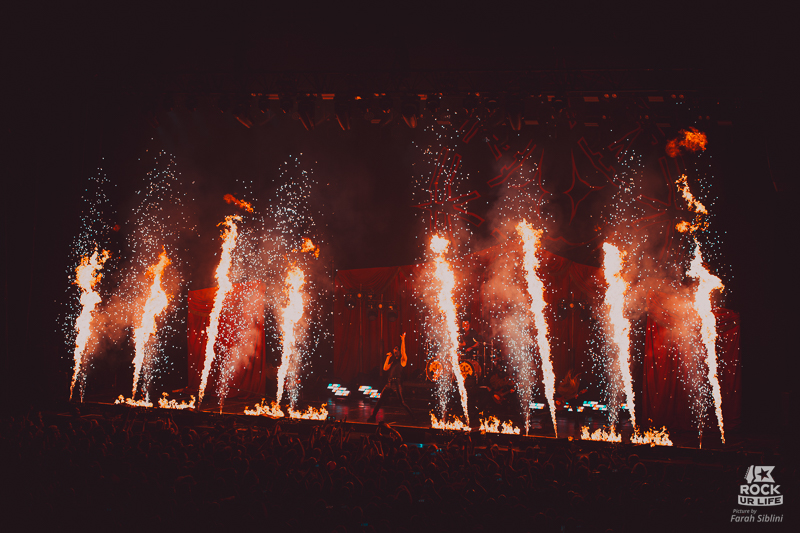 La tornade suédoise s’accorde tout de même une respiration. Un piano glisse vers l’avant de la scène. Johannes, arborant sa “piano jacket“, s’installe pour la ballade “Howling At The Waves”. Dans ce moment de partage intense, il confie avec émotion que le Zénith est la plus grande salle européenne où ils aient jamais joué en tête d’affiche. Il exprime une gratitude immense envers le public français, dont le soutien indéfectible a porté le groupe jusqu’à ce sommet.