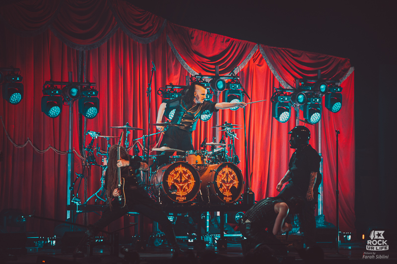 Si Avatar cultive une esthétique circassienne, le groupe propose un metal alternatif redoutablement groovy et dansant. Le Zénith alterne entre pogos et pas de danse disco sur le nouveau titre “Death And Glitz”. Pour pousser la blague jusqu’au bout, la batterie est accompagnée d’un improbable “homme-cymbale“, ajoutant une touche burlesque à cette mécanique parfaitement huilée.