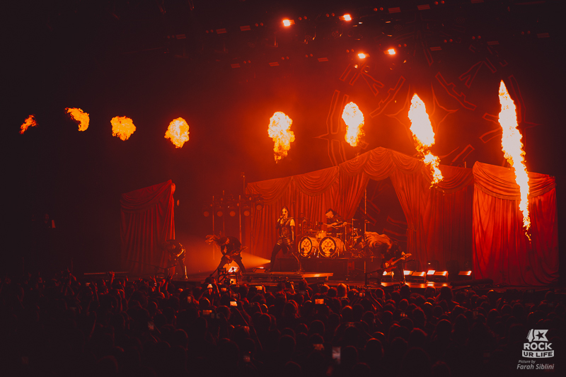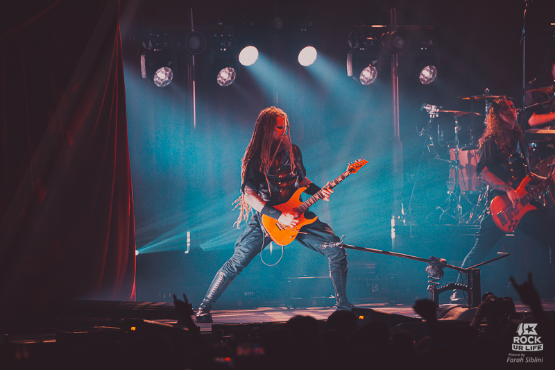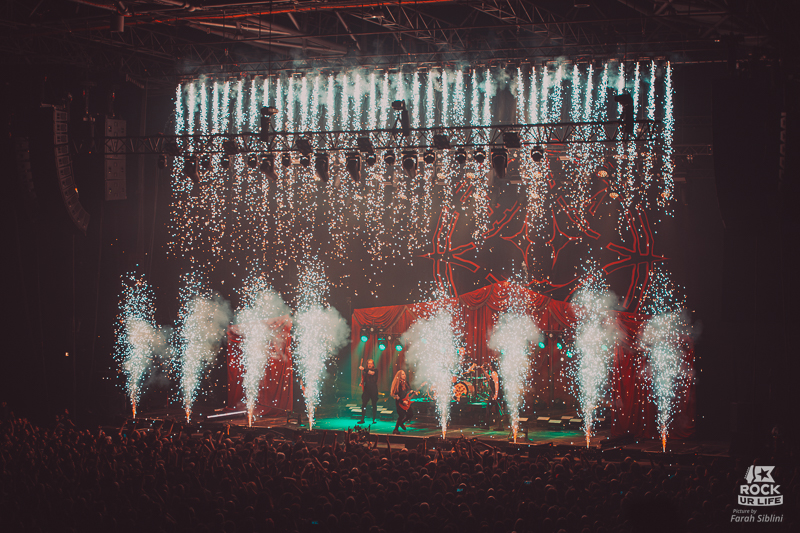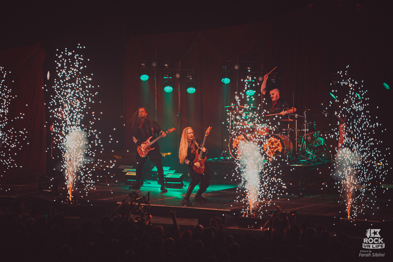 Dans un élan de communion totale, le groupe enchaîne avec son nouvel hymne, “Tonight We Must Be Warriors”. Après avoir bravé les caprices techniques du début de soirée, les musiciens s’imposent comme de véritables guerriers, menant la foule parisienne avec une maîtrise absolue. Un rideau d’étincelles s’abat alors sur le devant de la scène, plongeant le Zénith dans une ambiance féerique : le spectacle est total.