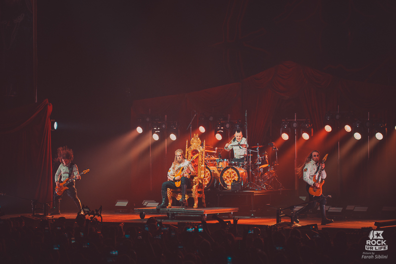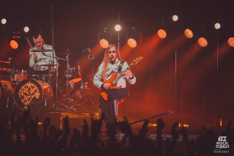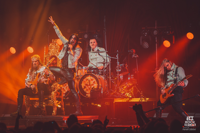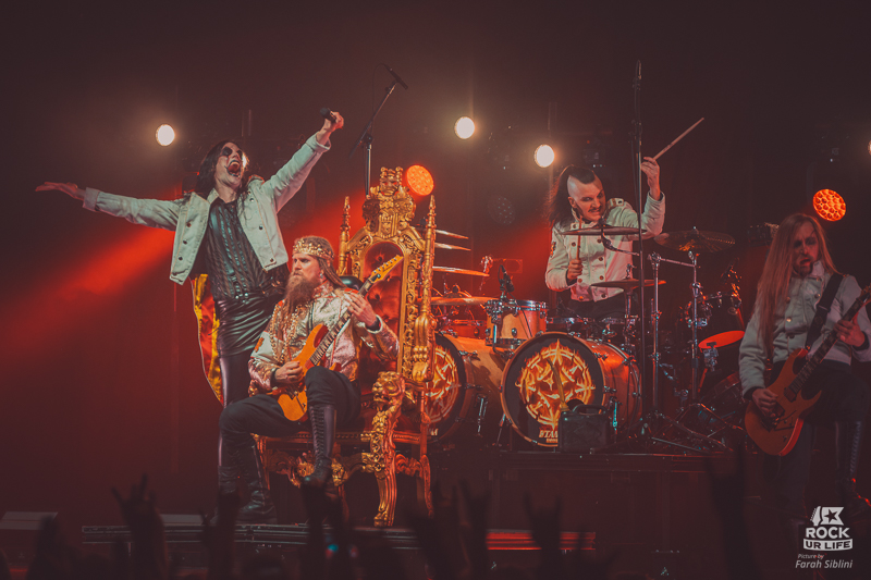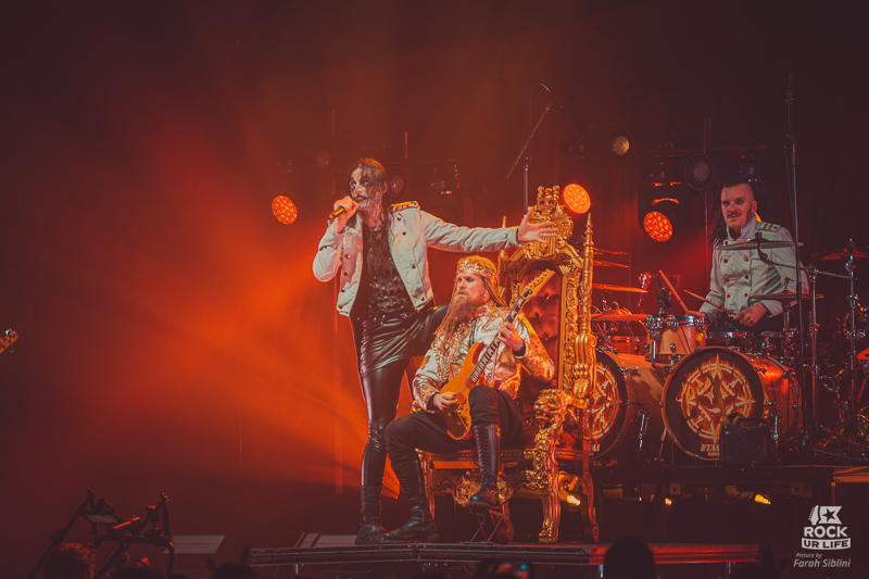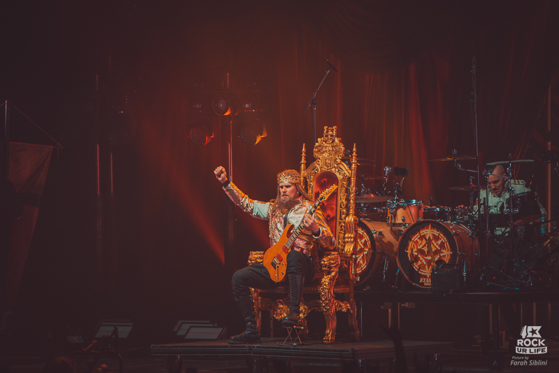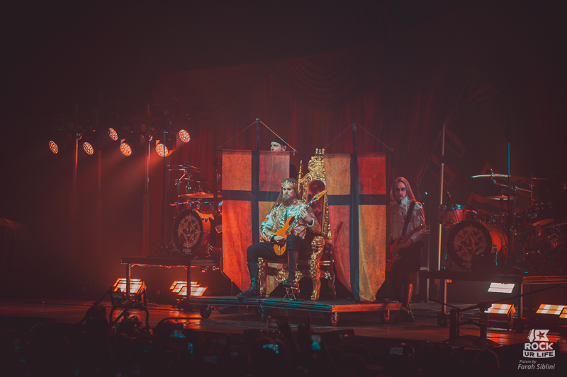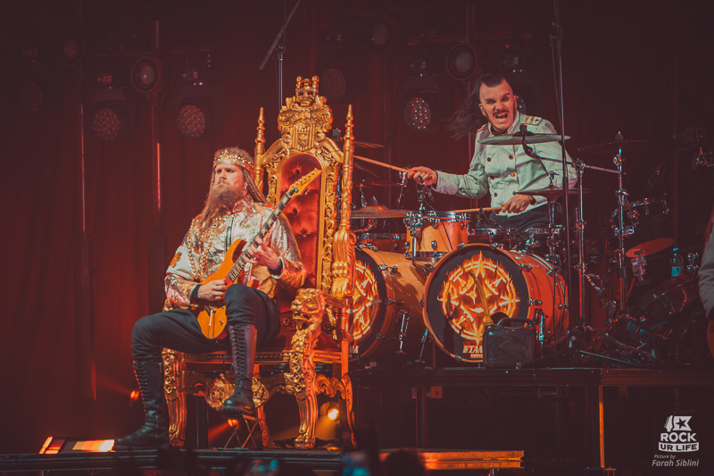 Le spectacle franchit un nouveau cap lors du couronnement du “roi du shred“, Kungen. Le guitariste trône fièrement sur son siège royal, flanqué de drapeaux à son effigie, et entame l’époustouflante “Legend Of The King” : huit minutes de démonstration technique pure, de mélodies épiques et de riffs acérés. Un moment de maîtrise qui rappelle que ce n’est pas le roi pour rien.