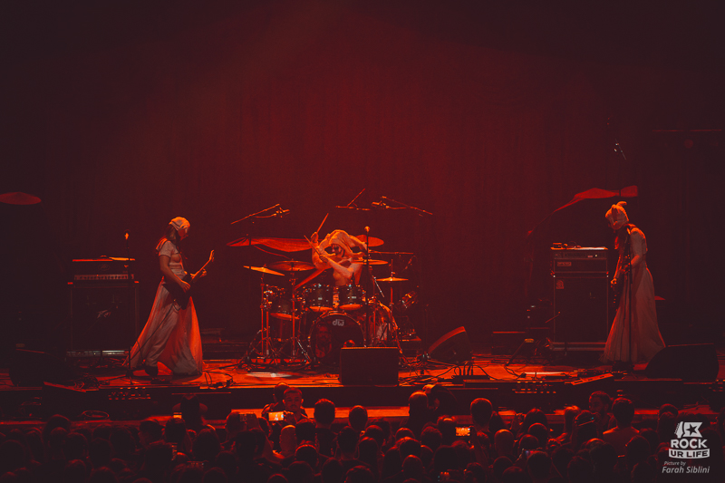 Dans une scénographie minimaliste, les trois sorcières instaurent un véritable sabbat, porté par leur black metal brut. À mi-set, elles réapparaissent enveloppées d’immenses chevelures noires dissimulant leurs corps, accentuant l’atmosphère occulte et pesante qui gagne la salle. Lorsque retentit “Black Metal Is Krig”, la bassiste saisit une épée qu’elle utilise comme un archet, tirant de l’instrument des sonorités encore plus dissonantes et tranchantes. Witch Club Satan n’est pas là pour plaire, mais pour faire réagir et éveiller les consciences sur le féminisme à travers une musique crue, nue et sans compromis.