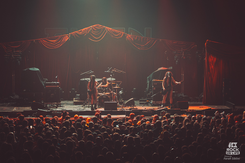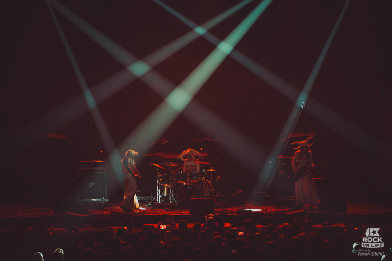 Il est 19h00. Trois silhouettes étranges, parées de coiffes en crochet, de longues robes immaculées et de corpse paint, s’approprient la scène du Zénith. L’ambiance est au rituel : un chant de gorge hypnotique s’élève avant de basculer vers un black metal qui fusionne tradition et avant-garde. Le trio féminin norvégien ne se contente pas de jouer, il propose une version féministe et viscérale de ce genre extrême. Face à un public entre fascination et perplexité, WITCH CLUB SATAN déploie un set incisif et volontairement provocateur.
