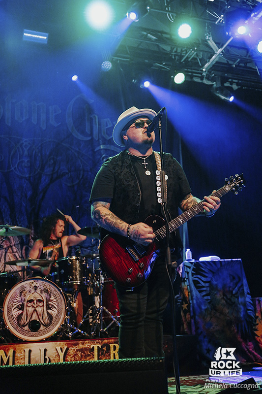 Suite à notre rencontre au sujet de la sortie de “Family Tree” en mars dernier, il est enfin temps de revoir BLACK STONE CHERRY à Paris. Après deux expériences réussies au Cabaret Sauvage, place au cran supérieur avec l’Elysée Montmartre. Il n’aura pas fallu vingt secondes pour que les fans donnent de la voix et accueillent comme il se doit la formation américaine. “Burnin'” démarre le show et “Me And Mary Jane” ne manque pas d’élever le niveau d’engagement vocal de la foule et que dire de “Rain Wizard” ensuite !