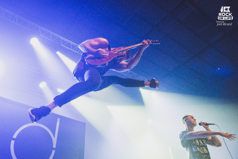 20h30. Les lumières s’éteignent et les Anglais de DON BROCO entrent en scène, accueillis par des applaudissements (quelquefois hésitants) et plusieurs cris de joie venus des premiers rangs. La surprise était complète il y a quelques mois, lors de l’annonce de ce groupe – plutôt orienté rock – comme première partie. Pari risqué donc. Lors des premières chansons, la foule hésite à bouger mais quelques mouvements de tête et déhanchés discrets se font voir au fur et à mesure de l’avancée du set, en plus de petites moqueries bon enfant venant des plus sceptiques. Pour autant, la jeune formation ne se laisse pas démonter : le chanteur Rob Damiani investit tout l’espace, danse, joue avec l’auditoire et tous semblent heureux d’être là ce soir. C’est alors que vient “Automatic” sur lequel le public est de suite plus réceptif. À la demande du frontman, toute la salle s’assoit, se relève tout en criant et sautant dans une ambiance des plus festives. Dur de trouver encore des sceptiques après cela. C’est d’ailleurs à partir de là que s’enchaîneront circle pit, cover de l’intro du “Killing In The Name” de Rage Against The Machine et wall of death, pour une ambiance détonante. En conclusion de sa performance, Don Broco quitte la scène sur son tube “Money Power Fame” sous les acclamations d’une audience conquise. Pari réussi !