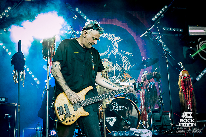 TREPONEM PAL (Spitfire Stage) – Les groupes parisiens se font rares lors de cette édition, alors c’est tout fiers qu’on accueille Treponem Pal. Il s’agit de l’un des pionniers du metal industriel français avec plus de trente ans d’existence, dont dix ans d’inactivité et huit albums à leur actif. Le dernier en date étant “Rockers’ Vibes”, sorti en 2017 et les Parisiens en dégagent un paquet de ces rockers vibes. Exposée sur une scène au décor atypique, la bande de Marco Neves nous propose un set d’une heure durant lequel, le public peine à rentrer dans l’ambiance, mais une fois lancé, il ne s’arrête plus et déborde d’énergie à l’instar de notre quatuor français.