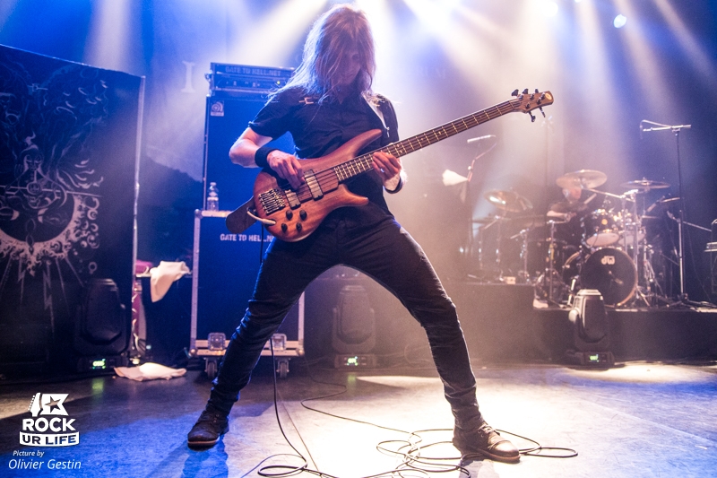 Casque, check. Epée, check. Hache, check. Cotte de mailles, check. Embarquons maintenant sur les drakkars et partons assister au set d’ENSIFERUM ! Avec un nouvel essai dans la besace, les guerriers sont attendus par une vaste foule. D’entrée “Axe Of Judgement” va mettre les choses au point. Comme lors de tout récent album, le premier titre, précédé d’une bande sonore, envoie le steak comme il faut : un morceau speed et entrainant donc où les chœurs fédérateurs seront également au rendez-vous. Bien évidemment, l’intensité sera de mise et en ressortant du placard quelques vieilleries telles que “Into Battle”, la foule allait bien évidemment réagir au quart de tour. Puisant à nouveau dans le opus éponyme, “Little Dreamer (Väinämöinen Part II) va également ravir la horde avec ces quelques passages folkloriques. “Warrior Without A War” embraie dans une temporisation avant que “Ahti” ne suive. Le précédent disque “Unsung Heroes” sera également à l’honneur avec le très réussi “Burning Leaves”. Petri Lindroos, Markus Toivonen et Sami Hinkka se démènent sur scène, surtout ces deux derniers cités, tandis que Janne Parviainen donne le La. Cependant, comme beaucoup l’auront vu, soit sur scène, soit via les réseaux sociaux, Emmi Silvennoinen, la claviériste est absente dans le cadre de cette tournée. Une autre charmante demoiselle la remplace en la personne de Netta Skog, tenant un accordéon entre les mains et qui a notamment joué avec Turisas. Cette version inédite du line up est tout de même très dynamique sur scène, puisque Netta ira voir le trio infernal, fera les chœurs et affichera un magnifique sourire tout au long du concert ! Il serait très intéressant d’imaginer le groupe passer à six, avec une claviériste et une accordéoniste, la palette de sons et les arrangements musicaux en seraient davantage sublimés. D’ailleurs avant que “Two Of Spades” ne soit jouée, Netta et Sami se sont donnés lors d’un humppa, dans la joie et la bonne humeur bien entendu ! “One Man Army”, piste éponyme du dernier album, va quant à lui annihiler les fans. Bien qu’au premier abord ce titre ne soit pas exceptionnel, il contient tous les éléments qui font qu’Ensiferum est une bête de scène. Vous savez bien, la petite mélodie qui envahie votre cerveau aux bouts d’une multitude d’écoute qui vous donne envie de la chanter/crier au concert ? Et bien Ensiferum sait très bien provoquer ce type d’agissement. Le rappel arrive, mais une dernière offrande va surprendre. “Victory Song”, dix minutes et trente-neuf secondes de bonheur. Tiré de “Victory Songs” paru en 2007, cette réalisation est sublime. Il est d’ailleurs dommage ne pas avoir droit à “One More Magic Potion” ! Le rappel voit Netta débarquer seule sur scène, présentant chacun des membres du groupe avec un instrument différent du sien. Sami à l’accordéon, Markus à la batterie, Janne à la guitare, Petri à la basse et Netta tient elle le micro. “Breaking The Law” sera mis à l’honneur, pour un moment fun et enjoué. Il est assez surprenant de voir le groupe dans de telle circonstance, lui qui est d’habitude dévouer à tout ravager sur son passage, cette note là les renvoie pas à leur image de guerriers. Vous me direz “oui mais par le passé, ils jouaient Bamboleo” ce qui est tout à fait vrai, mais cela est surprenant ! Afin de réveiller les morts, “From Afar” va -tiens ce titre aussi- mettre le pit à feu et à sang. Et que dire de “Token Of TIme” ? Encore une vieillerie qui n’a pas été joué depuis un moment. Très belle setlist ! Malheureusement toute belle chose à une fin et l’instant “tatadada tatadada” du concert se présente à nous. “Iron” met fin au concert et les troupes se retirent vers la sortie.