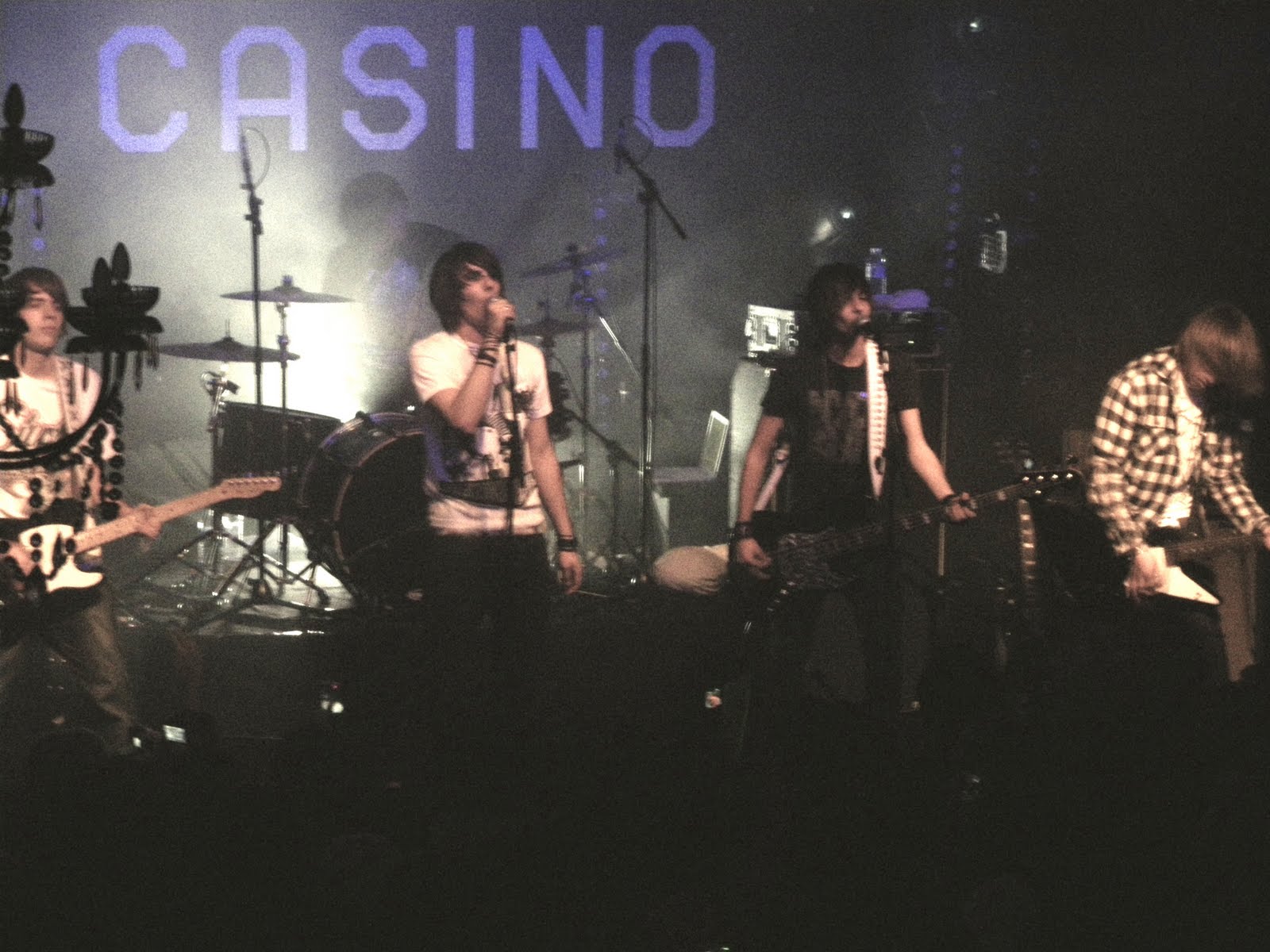 Au bout de la troisième chanson “L’enfer Nous Sourit”, le chanteur se fait faire remarquer par des fans qu’il transpire déjà. L’ambiance est détendue, et on ne peut que souligner l’existence d’une réelle complicité entre Eskemo et le public, ce qui est certainement dû à notre cher et tendre Internet qui permet aux cinq membres d’Eskemo d’être en contact avec leurs fans. Et à voir ça en live, ça fait plaisir. Les chansons défilent, le rythme ne se perd pas, et le son des instruments fait trembler les murs du Nouveau Casino. D’ailleurs, les quatre musiciens jouent sans fausse note (du moins, en apparence !). Même si la qualité du son de la salle ne permet pas toujours une très bonne compréhension des paroles, sans compter le problème de micro de Benjamin (basse), on comprend pourquoi les fans peuvent se retrouver dans les mots chantés par Romain. Un peu clichés parfois, mais quels ados n’ont pas ressenti la solitude et la perte de repères ? Après avoir joué “Je Dois Me Libérer”, le frontman annonce la venue d’une invitée spéciale. Non, il ne s’agit pas de Jena Lee, avec qui le groupe a fait un duo (“Eternise-moi”), mais de Kinnie Lane qui monte les rejoindre sur scène pour interpréter “Oublie-moi”.