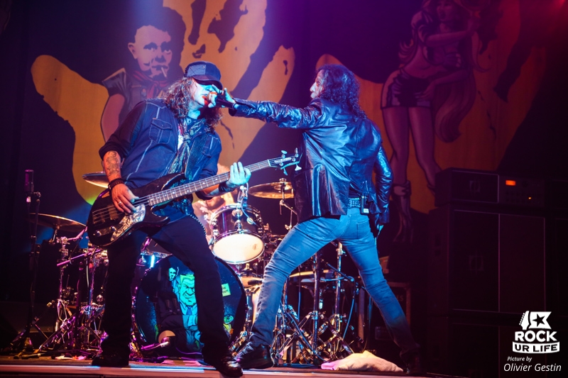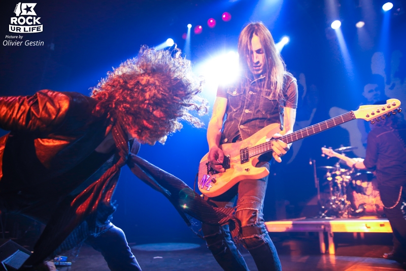Passé une difficile mise en bouche, l’éclate totale va intervenir en compagnie d’EXTREME. Suite à quelques années de pause, la formation US revient sur le devant de scène, sans nouvel album, afin d’interpréter leur plus grand succès studio mais pas que ! Ne disposant que d’une heure deux jours plus tôt du côté de Clisson, le set fut remanié à la sauce festival. Or en investissant le Bataclan, il était certain que cette soirée allait être unique. Décoré d’un sobre backdrop, la scène va vite accueillir Gary Cherone (chant), Nuno Bettancourt (guitare), Pat Badger (basse) et Kevin Figuereido (batterie). La température va vite monter avec l’introduction de “Decadence Dance” avant l’attendu “Let’s go!” de Gary. Autant dire qu’il sera vite impossible de rester immobile. Le groove et la funk d’Extreme s’emparent de chacun des corps de la salle et les font vaciller, sautiller et déhancher autour de leur musique. L’enchainement des titres suivants, à savoir “Li’l Jack Horny” et “When I’m President” indique que l’album sera joué d’une traite et dans son ordre original -à la différence de Metallica qui s’était amusé à jouer son Black Album à l’envers…- de quoi donner de sacré repère aux fans. Cependant, agissant de la sorte, le mythique “Get The Funk Out” sera donc interprété assez tôt dans la soirée mais avec toujours autant de succès. La basse vibre et Nuno harangue la foule avec ses petits riffs tandis que Gary rempli parfaitement son rôle de showman. Côté son, celui-ci est plutôt bon -il est vrai que selon son emplacement dans la salle, le ressenti peut être différent- mais les différents instruments et voix ressortent même si la guitare de Nuno était par moment en deçà. Autre incontournable avec Extreme, “More Than Words” viendra calmer cette petite foule et les bercer de façon câline et ce même malgré un raté de Nuno ! Remboursé ! Suite à l’amour, place à l’argent (cliché ?) avec “Money” et le prêche de Gary “Alléluia!”. Les hits s’enchainent avec “It’s A Monster” et le titre éponyme du dit album “Pornograffitti”. Les interventions de Gary sont assez brèves et pour cause, avec deux heures de show, peu de place sera donnée à la parlote. Nuno charmera, comme toujours, la gente féminine avec sa gueule d’ange et n’hésitera pas également à intervenir par moment pour remercier les fans d’être là ce soir. L’introduction de “He-Man Woman Hater” le mettra bien en avant, avant d’attaquer la suite du titre. Les titres suivants vont considérablement ralentir la cadence et l’intensité du show avec entre autre “Song For Love”, mais surtout “Hole Hearted”, où la salle sera invitée à taper dans les mains pour conclure cette première partie de set. L’heure du rappel sonne, mais il semble rester un bon paquet de minutes avant de voir les quatre gus quitter Paris. “Play With Me” va ranimer les débats en mettant vocalement à contribution les spectateurs. La fin approchant, c’est au tour des albums “III Sides Of Every Story”, “Extreme” et “Waiting For The Punchline” d’être mis à contribution avec notamment “Rest In Peace”, “Midnight Express” et enfin “Rise ‘N Shine” qui mettra un point final à ce superbe concert de 120 minutes.
