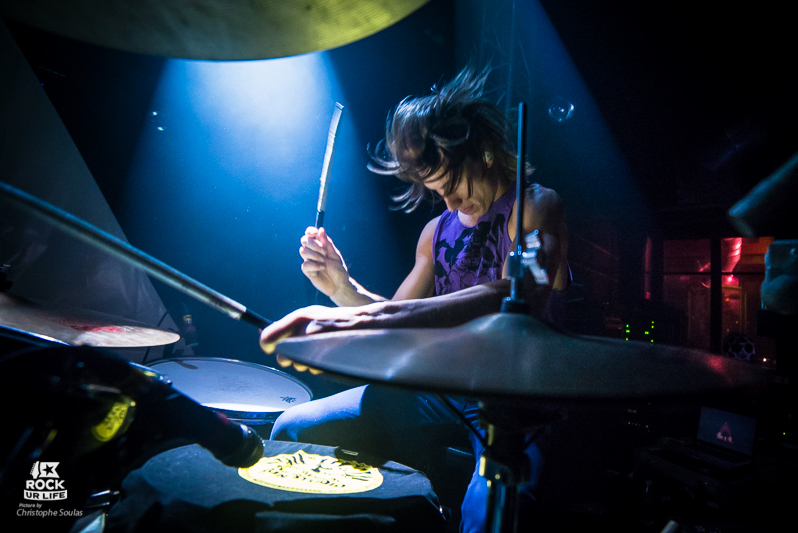 Place maintenant à THE ELECTRONIC CONSPIRACY, duo français d’électro rock. Inconnu pour une bonne partie de l’audience, la formation, basant ses sons sur des synthés et un drum kit, s’inscrit bien dans le contexte de la soirée et de la tête d’affiche. Les deux français donneront toute leur énergie et leur bonne volonté sur une scène décorée d’un écran géant en triangle, diffusant des images colorées et psychédéliques, pendant que le public se déchaînera sur des morceaux accrocheurs. Bonne communication entre le groupe et l’auditoire, mais le set deviendra malheureusement répétitif au bout d’une poignée de chansons… Succès en demi-teinte pour The Electronic Conspiracy.