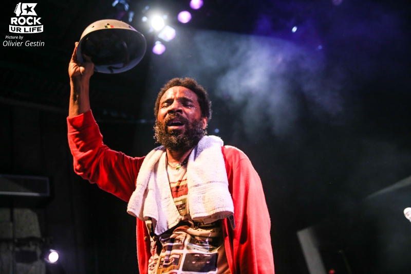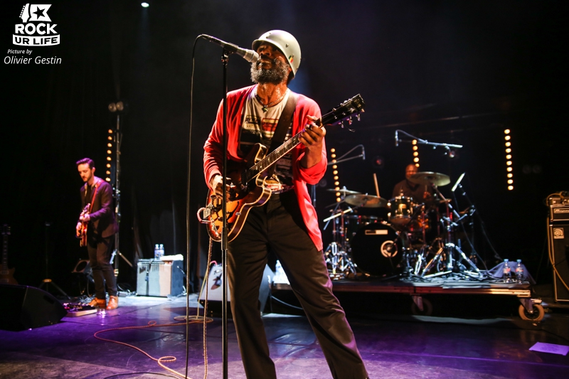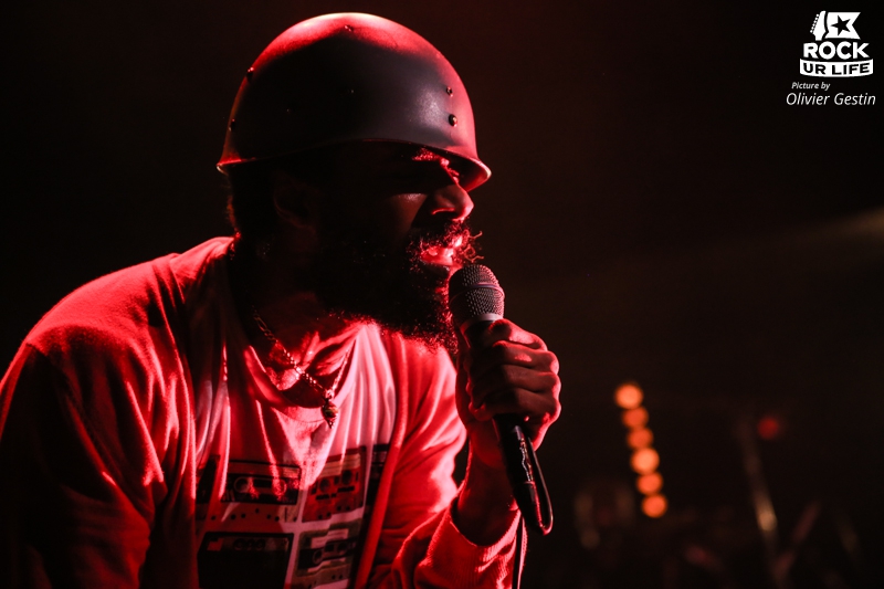 A 44 ans, Cody ChesnuTT a trouvé sa voix et son combat avec un look original portant un casque de l’armée déniché dans une brocante montrant qu’il est prêt à se battre pour défendre sa musique. Mais ce soir dans la salle Daniel Ferry de Nanterre, qui est complète, Cody n’aura pas besoin de batailler longtemps pour défendre sa musique et pour communiquer avec son public. Dès le premier morceau, l’ambiance est vive et tout le monde se met très vite à danser. Ce soir, ce sera le même set qu’à la Cigale en 2013 à un ou deux titres près, les premiers morceaux seront vite enchainés par Cody et l’essentiel des titres seront tirés du brillant “Landing On A Hundred”. Sur chaque intro comme “That´s Still Mama” la réaction de l’auditoire sera immédiate. Armé de son casque, Cody envoie du lourd scéniquement et vocalement. Cody passe de la soul avec un timbre de voix pouvant faire penser par moment à Marvin Gaye ou à un crooner, mais aussi en tenant en haleine l’assemblée par des discours gospélisants, non pas religieux mais plutôt sur l’amour de manière générale, tout en n’hésitant pas d’ailleurs à aller au contact du public. Le groupe qui accompagne Cody ChesnuTT est, comme à son habitude, sans section de cuivre qui pourrait donner une dimension plutôt intéressante, mais ses musiciens nous font vite oublier ce détail. Même s’ils sont peu mis en avant et relayés au fond de la scène, le groove qui s’en dégage est impressionnant avec un claviériste comme le batteur d’ailleurs, très attentifs aux improvisations du chanteur montre une formation rodée. Mention spéciale à la frappe sèche mais tout en nuance et à son incroyable groove du batteur, qui a su booster chaque morceau avec beaucoup de feeling. Musicalement, les morceaux très souls pour la plupart bénéficient néanmoins par moment de passage joliment jazzy ou de breaks très funky nuançant les morceaux, mais aussi avec un tempo limite country complètement inattendu avec le titre inédit, avant de terminer avec l’incontournable “Thank You” qui termina trop rapidement le show.