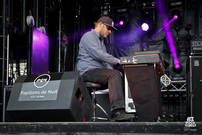 PUTS MARIE (Scène Erébia) – Étrangement il se produit tout à fait l’inverse pour Puts Marie, on adore sa musique, ce rock flegmatique abâtardi de blues et de hip hop, cette voix si particulière qui nous fait penser à plein de monde et ne ressemble à personne, cet univers sombre et fascinant à la Tom Waits. Et pourtant on reste un peu en dehors, à côté, comme si on n’avait pas vraiment été invité à la fête, comme si on débarquait au milieu d’une conversation qui a commencé et se poursuit sans nous. Le live, objectivement très bien, nous déçoit quand même un peu, mais peut-être en attendions-nous tout simplement trop.