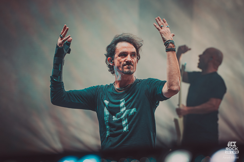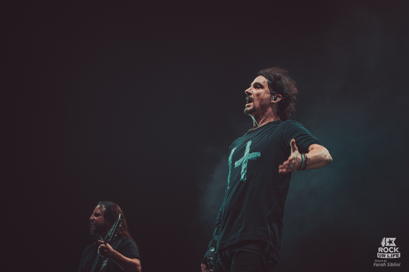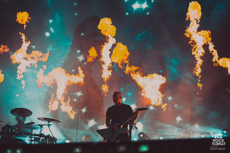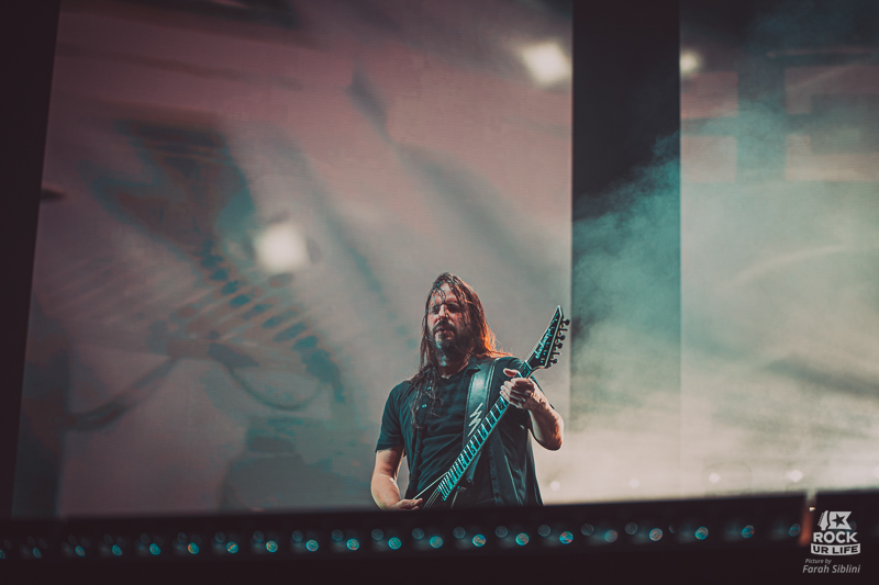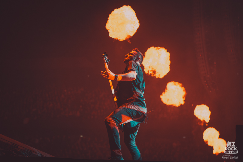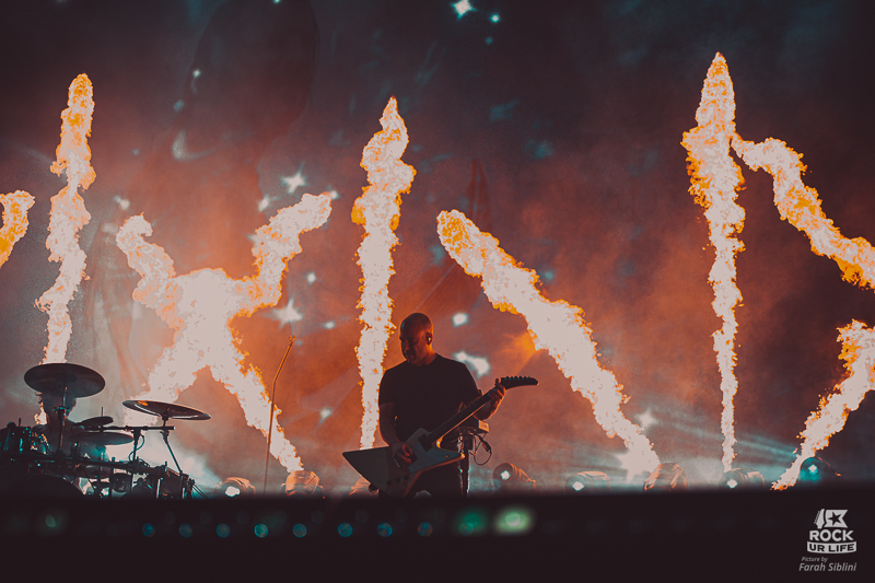 Le dernier acte s’ouvre sur la délicatesse en trompe-l’œil du tapping de “Born In Winter”, jouée pour la première fois sur cette tournée. Après un medley de l’album phare From Mars To Sirius (2005) avec une baleine argentée en fond, “The Chant” transforme l’Accor Arena en chœur géant. Marina revient d’ailleurs prêter main-forte sur ce moment de communion symbolique. Fosse comme gradins, tout le monde s’époumone et le sentiment d’une grande famille célébrant une musique plus si marginale est à son paroxysme. Très attendue, la tribale “Amazonia” sonne comme un signal d’alarme climatique, renforcée par les animations enflammées sur les écrans. À l’image de l’intensité de ses prestations, l’engagement de Gojira n’a jamais faibli. Une constance qu’il s’agit de saluer à l’aube de trente ans de carrière et d’un huitième disque à venir l’an prochain.