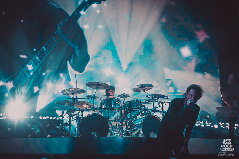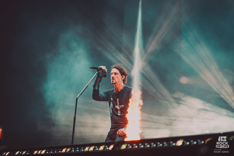 La montée en tension se poursuit avec l’enchaînement “Stranded” / “The Cell”, déclencheur de jets de confettis et de circle pits endiablés. Absente des setlists depuis 2017, “Wisdom Comes” surgit comme un lointain rappel des racines death metal du combo. L’immersion devient totale sur “Flying Whales” avec l’arrivée de deux baleines géantes volant au-dessus d’une fosse complètement ébahie. Puis, une pancarte “Vous voulez plus de double pédale ?” brandie par Mario avant “From The Sky” donne le ton de la déferlante à venir. Peu importe l’album, chaque titre confirme la puissance de feu d’un Gojira taillé pour l’Arena, porté par des jeux de lumière, des machines à fumée et une pyrotechnie plus généreuse que lors du précédent Bercy. Mais c’est bel et bien quand Marina Viotti rejoint le groupe pour “Mea Culpa (Ah! Ça ira!)” que le show bascule dans une autre dimension. On a l’impression d’assister à une after party olympique !