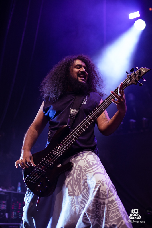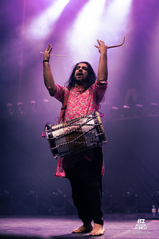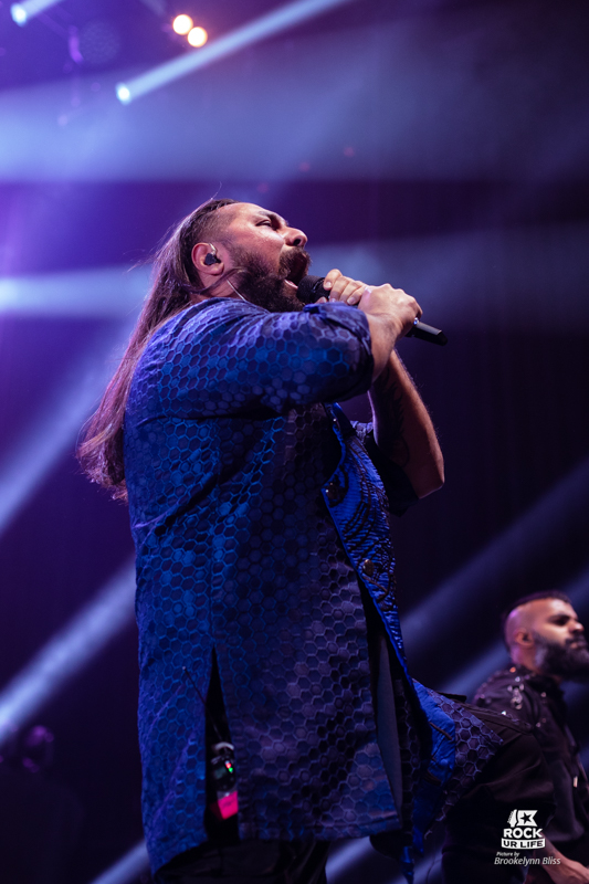 Pour ouvrir le bal ce soir, place à des invités de marque : BLOODYWOOD. Après avoir parcouru près de 7 000 km, les Indiens débarquent à Paris avec leur nu metal infusé de mélodies traditionnelles, une signature sonore aussi fraîche qu’efficace. La preuve : ils n’ont besoin que d’un seul morceau pour déclencher un wall of death et installer un chaos parfaitement maîtrisé. Entre énergie brute et appels constants à la bienveillance dans le pit, le groupe transforme l’Olympia en un bloc compact vibrant d’intensité. À en juger par le nombre de T-shirts à leur effigie dans la fosse, on ne serait pas surpris de les voir revenir rapidement en headliners. Mission accomplie pour Bloodywood : le public parisien est conquis.