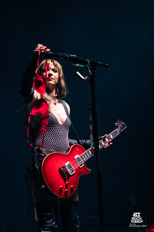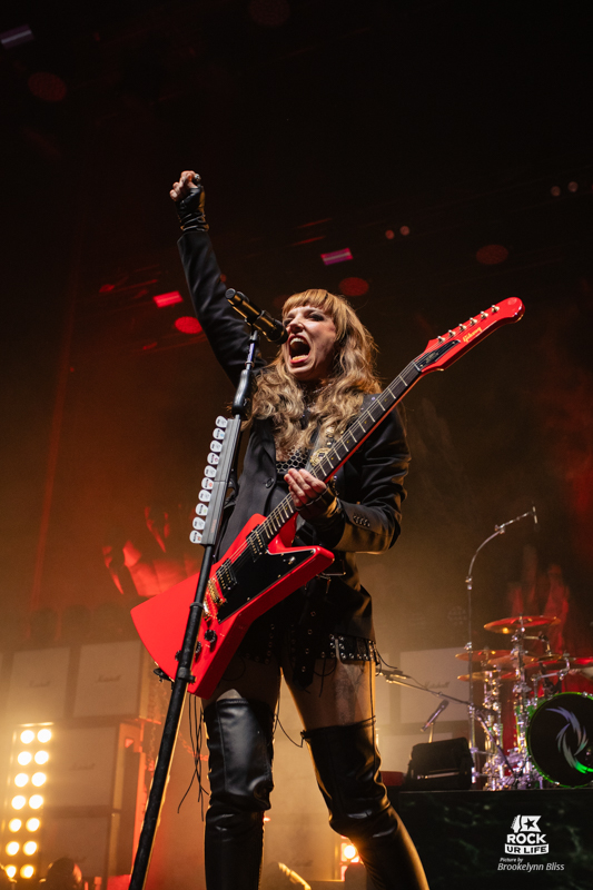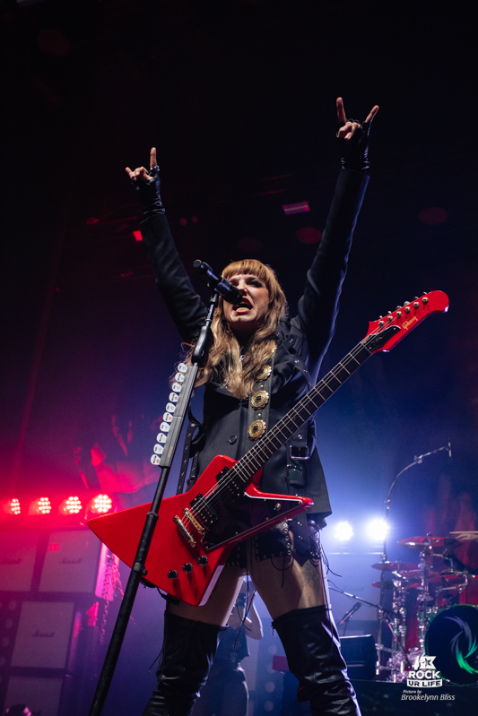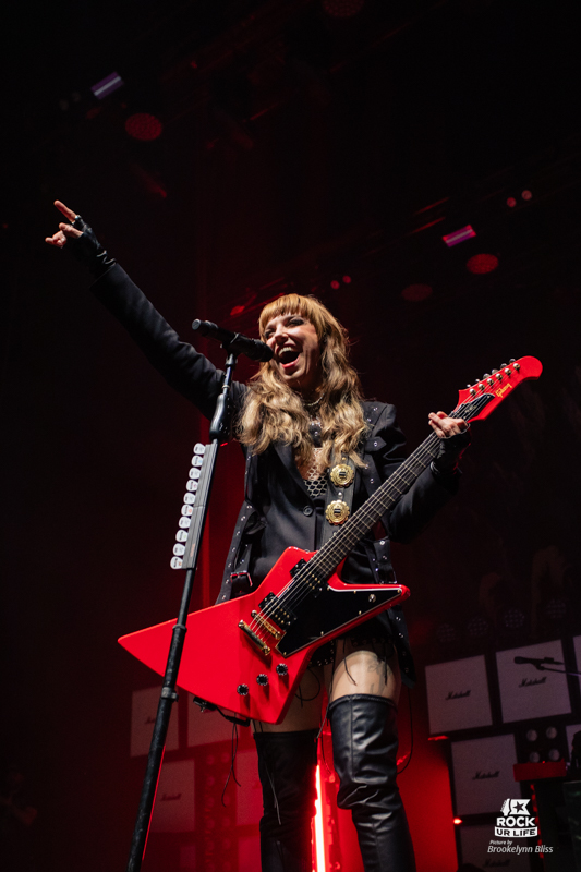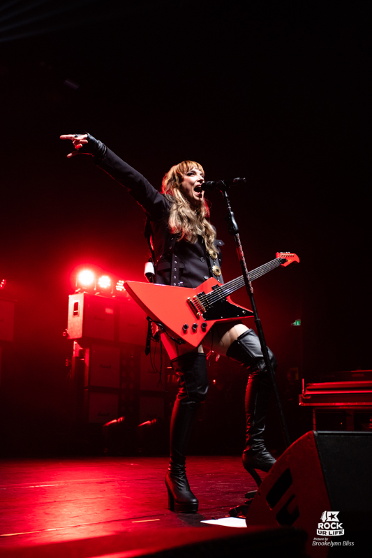 Mais ce soir, on n’assiste pas à une simple promo : on est témoin d’une véritable démonstration de puissance et de savoir-faire. Lzzy Hale électrise la scène avec une voix sans limites : elle enchaîne des passages saturés à l’extrême avant de glisser vers des instants éthérés et mélodiques, révélant une maîtrise vocale tout simplement bluffante. Dès le deuxième titre, le classique “I Miss The Misery” explose dans la salle : un cri féroce mais parfaitement contrôlé, qui dépasse largement la puissance de l’enregistrement studio. Un mot résume tout : empowerment.