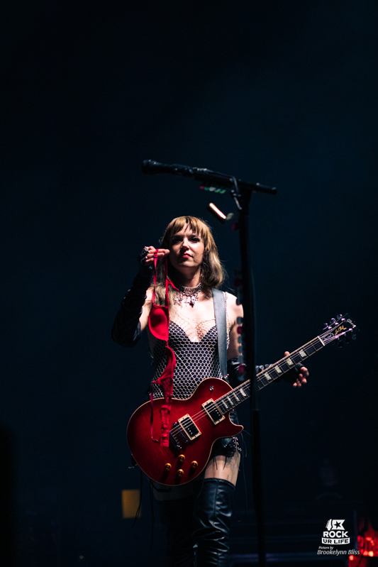 L’empowerment ne se limite pas à la force brute : il explose aussi dans les moments d’intensité émotionnelle, et Halestorm l’a parfaitement compris. Les ballades de la setlist font vibrer le public d’un frisson collectif. Dans un instant presque a cappella, Lzzy entonne le refrain poignant de “Familiar Taste Of Poison”. Chaque syllabe frappe le public par la beauté de ces paroles à la fois intimes et universelles. On serait presque frustré de ne pas avoir la chanson dans son intégralité, mais ce moment précieux renforce la connexion entre le groupe et le public.