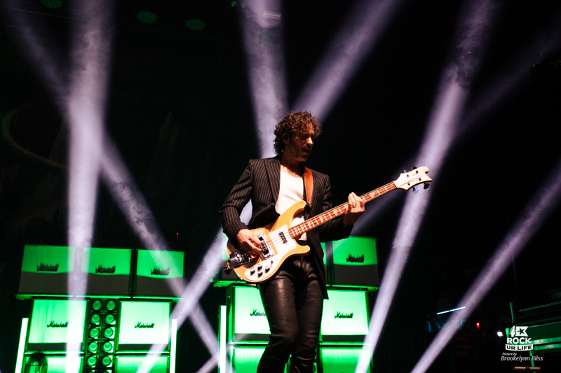 Ce soir, le groupe et la salle ne font plus qu’un. Des classiques comme “Freak Like Me” ou “Love Bites (So Do I)” explosent toujours avec la même énergie, tandis que la foule se transforme en marée humaine vibrant à l’unisson. Cette proximité dépasse la scène : Joe Hottinger, le guitariste, envoie une cinquantaine de médiators dans le public, déclenchant une avalanche de sourires et de mains levées. Fidèle à sa tradition, Arejay Hale délivre un solo de batterie mémorable avec ses baguettes XXL, entraînant la foule dans un mosh pit endiablé.