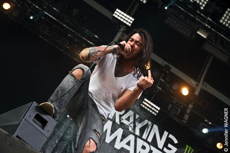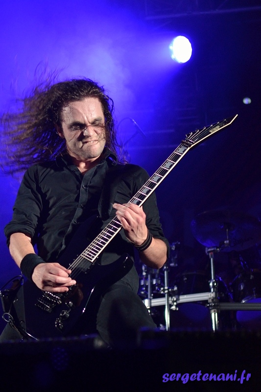 23h10 : la première tête d’affiche de ces trois jours avec MEGADETH, figure historique du thrash metal avec son fondateur Dave Mustaine. Comme d’habitude, le show est très carré et millimétré à la seconde près, pas de place à l’improvisation. Entre anciens morceaux, hits, et ceux du dernier album “TH1RT3EN“, l’ensemble ravit toute l’audience. Sans surprise, à chaque fois que Megadeth joue en France, le point culminant du concert est et restera “A Tout Le Monde”, dont le refrain est intégralement en français; en quelque sorte la chanson locale, les nombreuses vidéos circulant sur internet rendront bien compte de l’aura de ce morceau ici. Malgré une excellente prestation, avec un final mêlant “Holy Wars” et “Mechanix”, il sera regrettable d’avoir eu un son peu fort comparé à d’autres prestations dans la journée; et puis le groupe n’est pas connu pour être extrêmement chaleureux sur scène, même si Megadave communique pas mal avec le public. Ils sont un peu froids, et non pas parce que la pluie a fait son apparition, mais ceux sont des pros; ils font leur show et s’arrêtent là. Cependant, alors que leur annonce en tant qu’headliner en étonna plus d’un, il faut bien l’avouer, Megadeth en a clairement la carrure et l’a démontré de forte belle manière vendredi soir devant plus de 25 000 personnes.