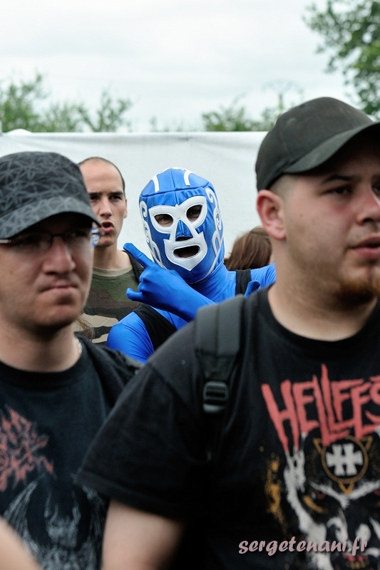 Avant de commencer les divers concerts qui vont rythmer ce premier jour, une découverte du site s’impose. Tout d’abord, l’espace VIP, plutôt grand, des décorations très sympathiques et pas mal d’endroits pour s’y poser; par la suite, rapide coup d’œil sur les deux Mainstages, comme d’habitude, côte à côte, notons que ce sont celles qui ont été utilisées pour KISS en 2010 et que dorénavant, elles le seront à chaque fois. En face des Mainstages, un grand espace de restauration, avec divers stands, derrière celui-ci, la Warzone (scène HxC). Un peu plus loin, le bar à vin, caché par une petite étendue d’arbres, qui dégage une ambiance très cozy et chaleureuse, surtout la nuit avec les multiples décorations. L’Extreme Market sera plus simple d’accès, puis face à celui-ci, la grande tente comprenant l’Altar et la Temple (scènes death/black), et tout juste à coté de la sortie, la Valley (stoner/psyché).