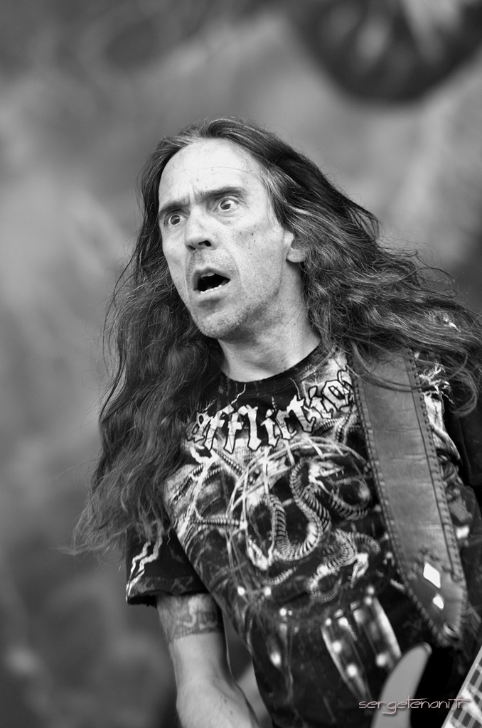 Alors que leur parcours chaotique semble être bien loin derrière eux, ceux qui étaient à l’affiche de la dernière édition en date du Thrashfest – qui avait eu lieu au Bataclan en compagnie de Sepultura et Exodus – nous reviennent ! David White (chant) et ses faux airs de David Draiman, Lee Altus (guitare), Kragen Lum (guitare), Jason Viebrooks (basse) attisent la foule avec force et nous voila parti pour du pur thrash metal, en provenance de la Bay Area. Comme à son habitude, l’efficacité est au rendez-vous, malgré les quelques accros sonores. Précisons que Darren Minter (batterie) est temporairement remplacé par Jon Dette, sur l’actuelle tournée européenne, lui qui avait déja dépanné chez Anthrax et dernièrement chez Slayer, lors de leur tournée australienne. Un excellent set, animé, énérgique et féderateur qui en aura conquit plus d’un. David White annoncera également la prochaine sortie d’un tout nouvel album ! Intéressant donc !