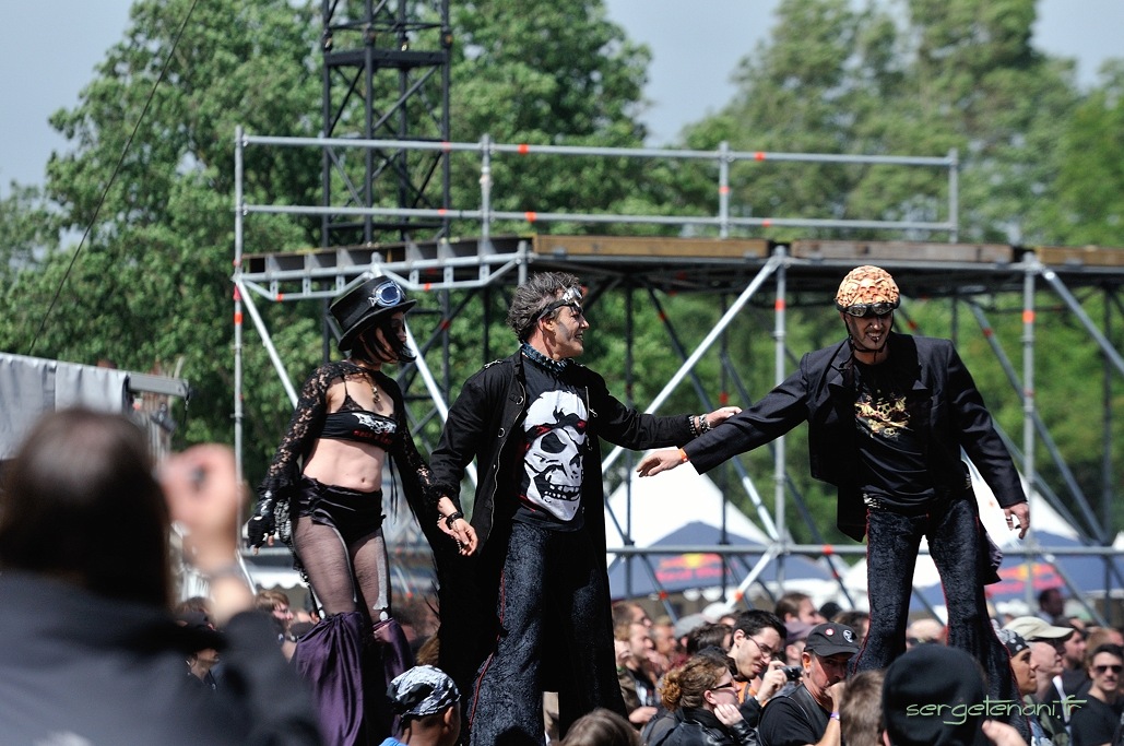Les vainqueurs de l’Eurovision 2006 prennent du grade et trouvent une véritable réponse vis-à-vis du peuple français. Etant en plein tournage d’un documentaire autour du groupe, la prestation du soir sera d’ailleurs intégré à cette sortie; information dévoilée lors de leur conférence de presse. Mr Lordi, Amen, OX, Mana et Hella débarquent dans leurs costumes. La symbiose se fait parfaitement avec la foule et le show démarre sans attendre. Comme à son habitude, la formation finlandaise orchestre ses shows, à la façon d’Alice Cooper, où pyrotechnie et artifices subliment, toute proportion gardée, la prestation. Entre nouveaux titres et hits, une quinzaine de morceaux vont composer la setlist du soir. JayJay French, des Twister Sister, fera son apparition sur “It Snows In Hell”, alors que les charmantes Nympherno feront deux apparitions également. Mention spéciale aux titres “I’m The Best”, “Devil Is A Loser”, “Hard Rock Hallelujah” et “Would You Love A Monsterman?”. 23h05, les créatures se retirent et vont maintenant laisser place à la tête d’affiche de la journée; des cousins danois parait-il.
