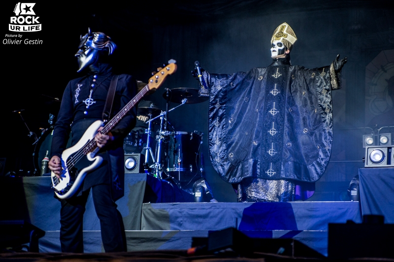 GHOST (MainStage 02) – Le bal des MainStages bat son plein et les Suédois masqués de Ghost sont très attendus. Annoncé comme un show spécial Hellfest, les espérances sont grandes, notamment pour ceux ayant eu l’occasion de les voir plusieurs fois lors des deux grandes tournées françaises du groupe fin 2015 / début 2016. Une petite incertitude quant à la voix de Papa Emeritus III suite à sa laryngite de la semaine passée se confirme malheureusement rapidement.