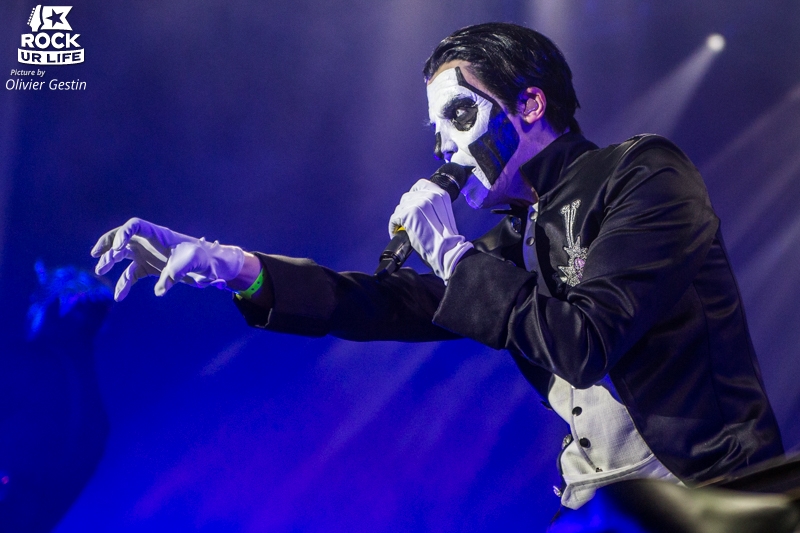 Sans que cela n’entache complètement le set, l’antipape est clairement moins en voix qu’à son habitude, ce qui ne l’empêche pas d’interagir avec l’audience et de lui sortir ses répliques favorites. Les musiciens, quant à eux, assurent toujours le travail avec une présence et un jeu de scène incroyables. La petite heure de jeu commence à être bien entamée, et à part un excellent jeu de lumières, et des “Sisters Of Sin” en nombre qui sont descendues abreuver les premiers rangs, on se demande ce que va pouvoir donner ce show si spécial.