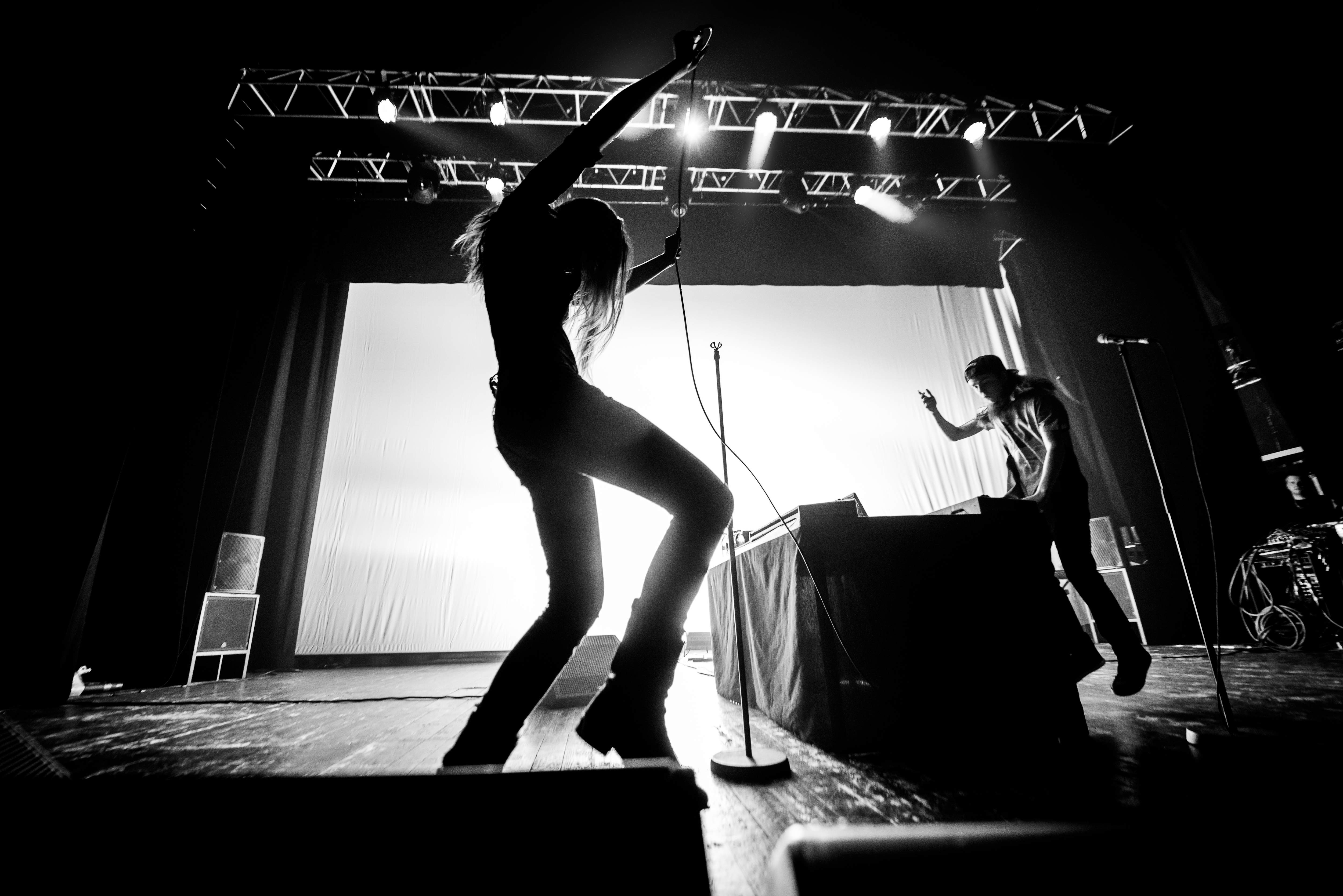 20h15 : la soirée démarre avec MUTINE, duo formé par Manon et Silvio qui entame son set avec une chanson inédite, à paraitre sur le premier album attendu pour le premier semestre 2014. Parmi les quatre morceaux joués, lorgnant du côté de la pop électro, on retrouve les deux singles qui ont fait connaitre les cannois en 2012, “Fille Ou Garçon” et le dernier tube “Pose Tes Mains” qui a conclu le court set après des remerciements à HP. Si vous recherchez des paroles profondes, passez votre chemin, ici, la marque de fabrique de Mutine, ce sont des paroles niveau Lorie susurrées par la douce voix de Manon, qui ont le pouvoir d’être ultra catchy jusqu’à rester en tête durant un moment, que vous le voulez ou pas. On retiendra l’étonnante reprise du “Californie” de Mylène Farmer version électro/dubstep.