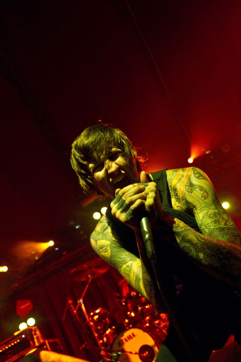Avant le dernier groupe, les spectateurs sortent s’aérer. Mais c’est encore trempés de sueur qu’ils se pressent pour acclamer Suicide Silence qui ouvrit les hostilités avec “March To The Black Crown”. Les dernières batteries d’énergie sont exploitées jusqu’au bout, sous forme de moshpits, circle pits, etc. Le charismatique et rebelle Mitch Lucker maîtrise son auditoire d’une main de fer, déclamant ses instructions avec conviction. Avant “Smoke” : “Si tu fumes de l’herbe, fume-la MAINTENANT. Si tu fumes des cigarettes, allumes en une. Si tu ne fumes pas mais as du feu, élève la flamme dans les airs.” Bien évidemment, seules quelques timides flammèches issues de briquets apparaissent. La soirée prend fin sur “No Pity For A Coward”, et une invitation par Mitch à envahir la scène pour lui “serrer la pince”. Message reçu. On assiste à un moment inédit où des spectateurs prennent possession de l’estrade, crowdsurf dessus, profitent de manière directe de l’expérience de la musique live. La soirée prend fin sur cette belle image.