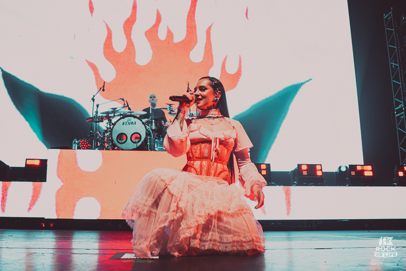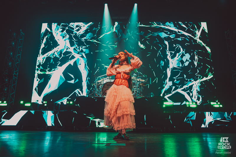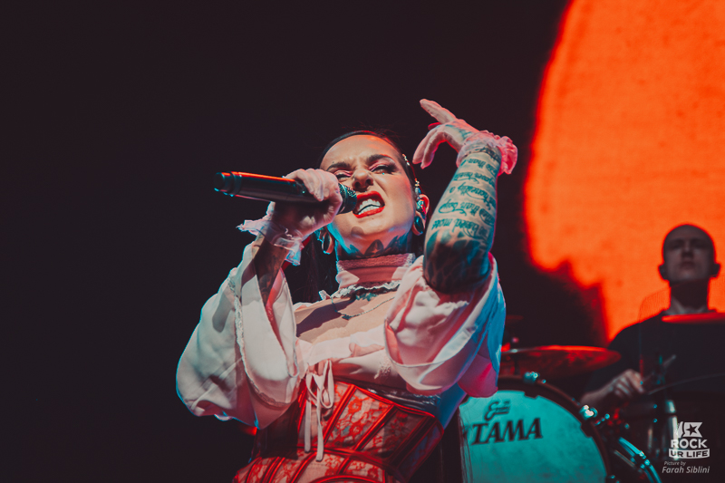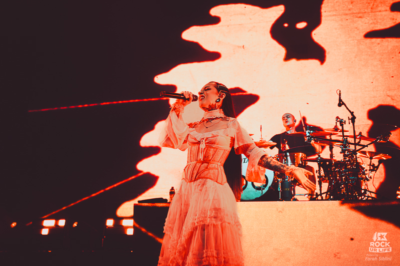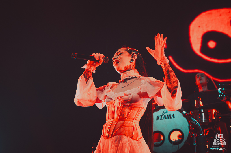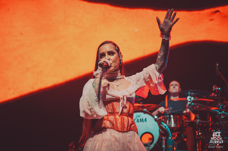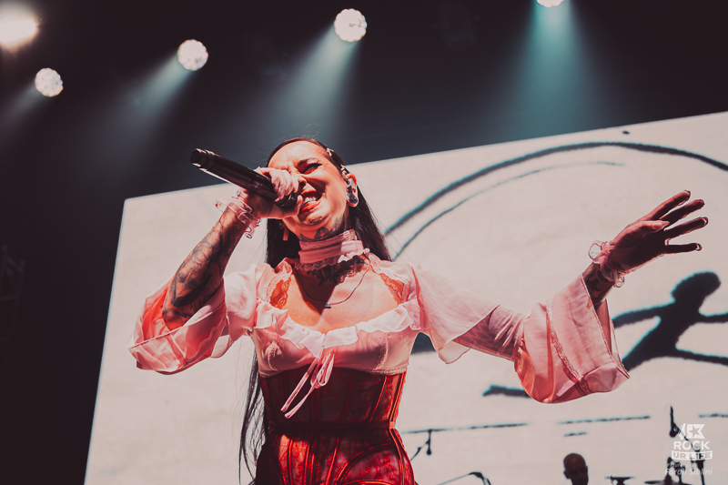 “Good evening kids, take your seats, open up your bibles…“, place au rouleau compresseur de la soirée : JINJER. La salle, désormais pleine, se presse vers l’avant pour capter toute l’aura magnétique du quatuor ukrainien. Un an après la sortie de Duel, le groupe revient défendre son dernier album sur scène et confirme, une fois encore, sa place incontournable dans le paysage du metal moderne.
