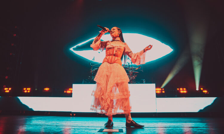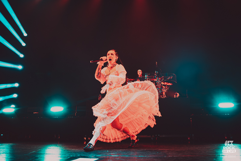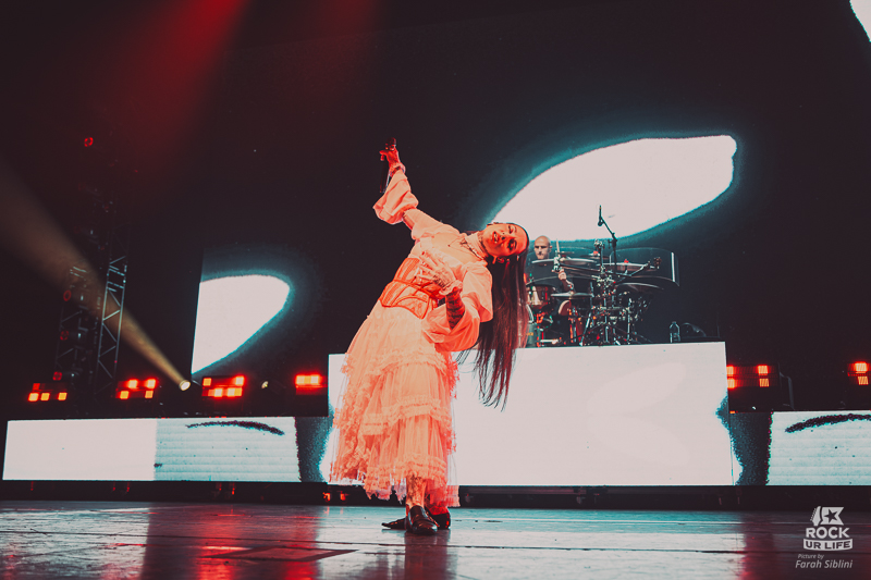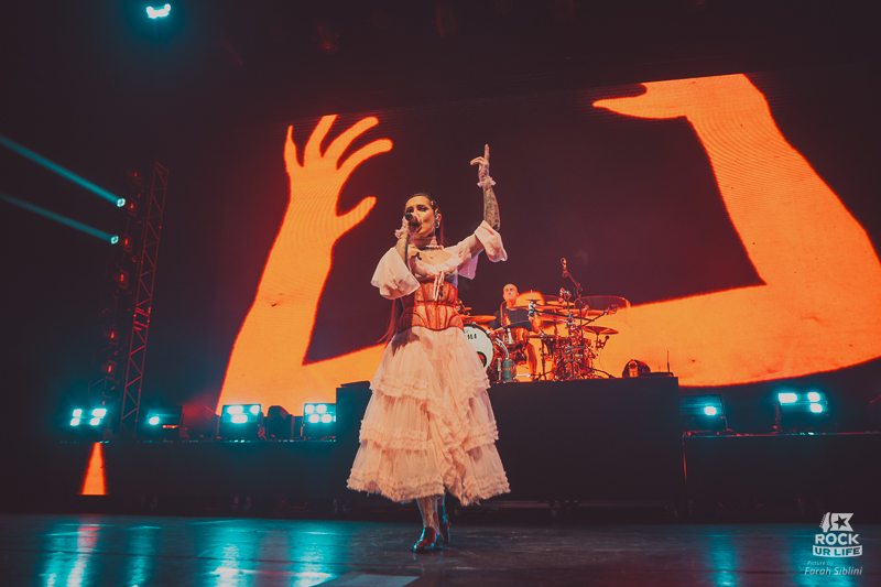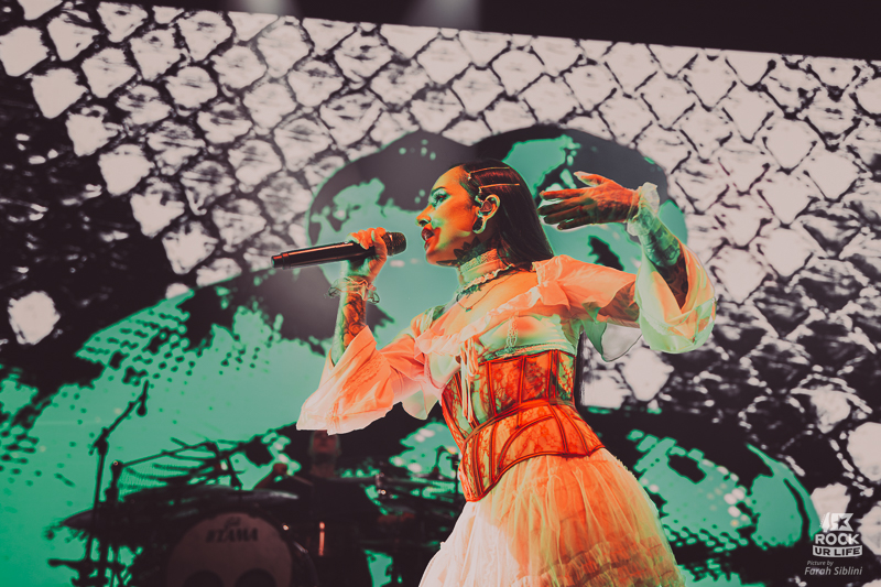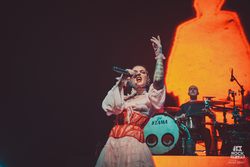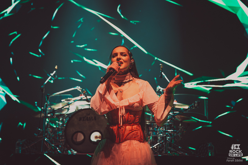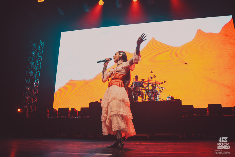 “Good evening kids, take your seats, open up your bibles…“, place au rouleau compresseur de la soirée : JINJER. La salle, désormais pleine, se presse vers l’avant pour capter toute l’aura magnétique du quatuor ukrainien. Un an après la sortie de Duel, le groupe revient défendre son dernier album sur scène et confirme, une fois encore, sa place incontournable dans le paysage du metal moderne.