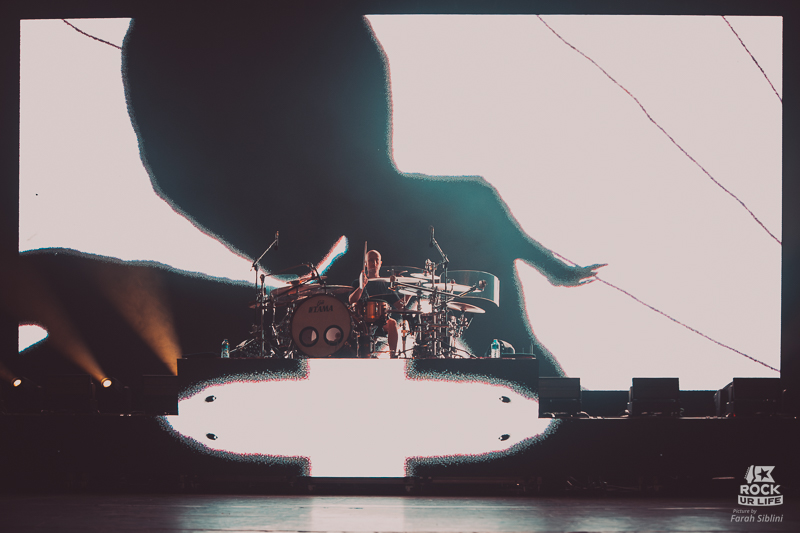 L’écran géant en fond de scène prolonge l’expérience en diffusant des visuels captivants et cohérents pour chaque morceau : des armes à feu sur “Fast Draw”, une illustration des luttes individuelles et collectives sur “Tantrum” et “Kafka”. Ces images font écho à la situation actuelle en Ukraine, un parallèle particulièrement frappant lors de “Someone’s Daughter”, quand des paysages urbains dévastés envahissent l’écran.