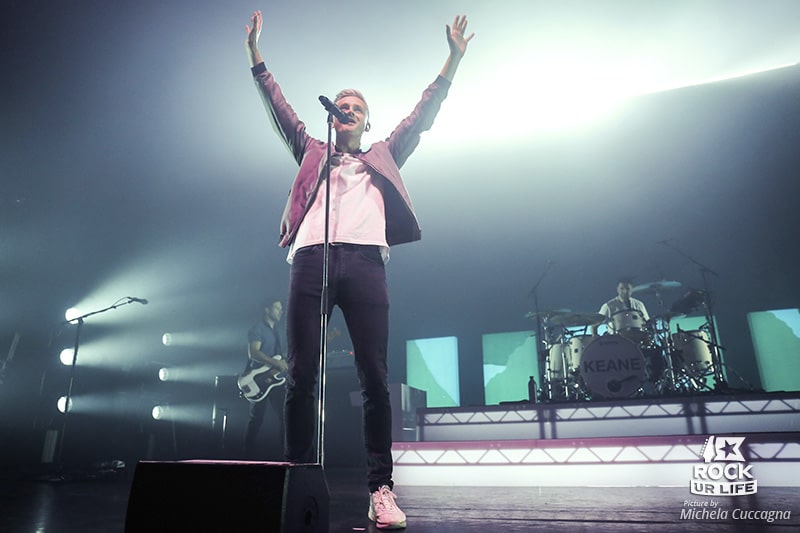“Disconnected” lance le set des Britanniques de KEANE. Toujours aussi dynamique, Tom Chaplin virevolte avec son micro. L’arrivée du groupe est saluée par des hurlements de joie et les applaudissements du public.