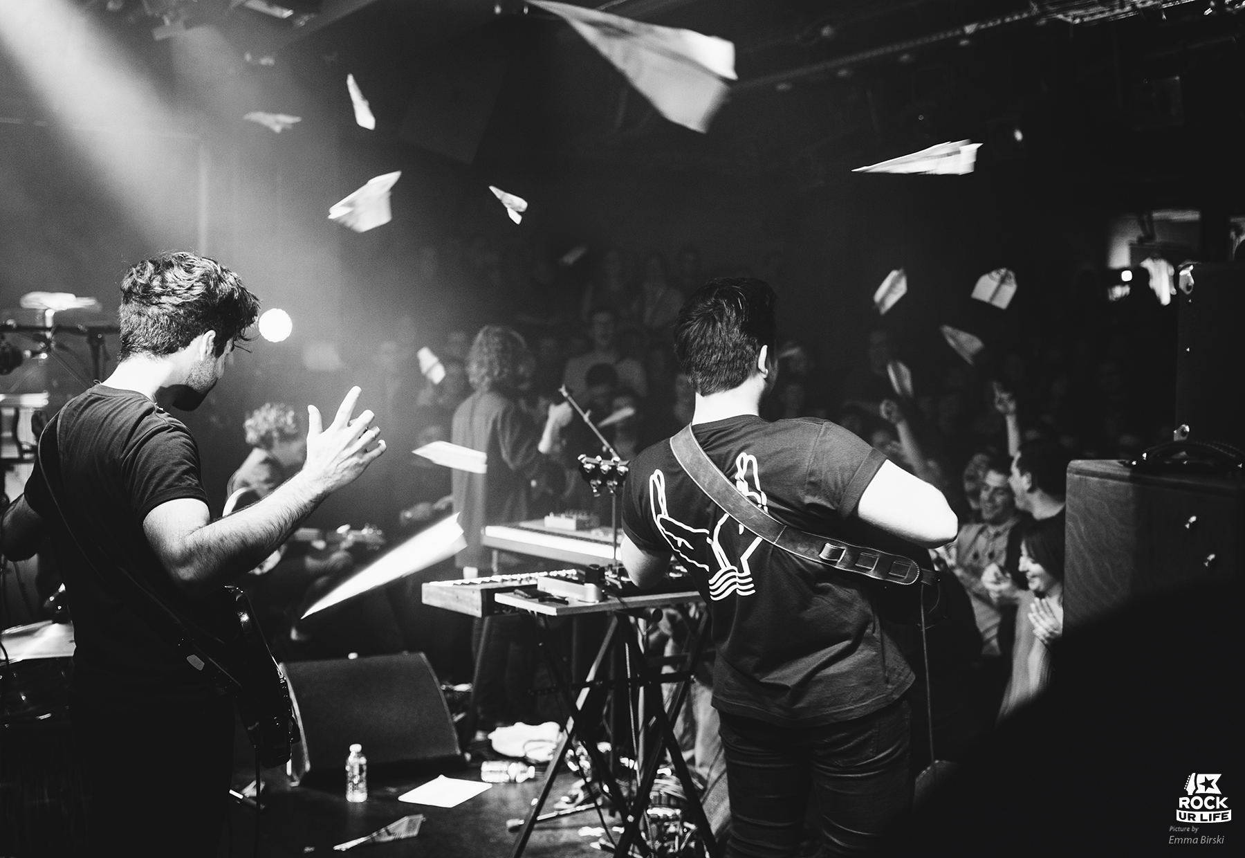 On notera la subtilité du jeu des musiciens, qui passent de moments légers et aériens à des passages ultra-puissants avec une facilité déconcertante. En témoigne la progression sur “Ocean”, partant d’un émouvant piano/voix pour finir avec les membres au complet jouant fort et intensément. Mais le véritable point fort du concert, en admettant qu’il faille en choisir un, restera “Hold On”, sur laquelle l’auditoire chante spontanément les choeurs, improvisant ainsi un canon avec le groupe, avant que ce dernier ne se fasse recouvrir d’avions en papier provenant du public (vraisemblablement une initiative de ce dernier). Un instant de poésie et de spontanéité, traduisant la véritable communion entre Kid Wise et sa fanbase.