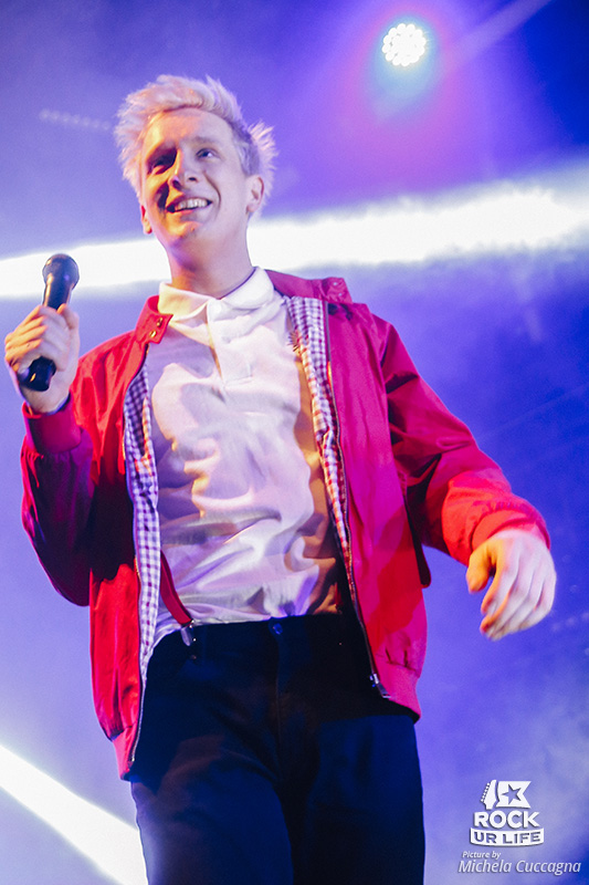 Après un court intermède chorégraphique mêlant danse contemporaine et hip hop, la lumière s’éteint et une voix que tout le monde connaît résonne : celle de Google Traduction. Dans un français approximatif, elle donne le ton de la soirée en présentant le groupe à venir comme les dignes héritiers des auteurs les plus raffinés d’Allemagne, entraînant une vague de rires dans le public. Après avoir déclaré que “l’allemand ne sonne pas bien”, la voix finit par annoncer KRAFTKLUB, qui débarque sur scène tout en rouge et blanc, et embraye sur “Band Mit Dem K”. Il n’en faut pas plus au public pour partir au quart de tour, lançant un moshpit dès le deuxième morceau, “Fenster” et hurlant chaque parole. La bande, véritable machine à pogos, enchaine les morceaux survitaminés extraits de ses trois albums, “Mit K”, “In Schwarz” et “Keine Nacht Für Niemand”. On ne saurait pas dire qui, de l’audience ou du groupe, est le plus remonté à bloc. Wall of death, pogos, moshpit, circle pit, stage dive, slam, c’est une vraie démonstration de tout le vocabulaire de la chorégraphie de concert que fait l’assemblée, majoritairement allemande.
