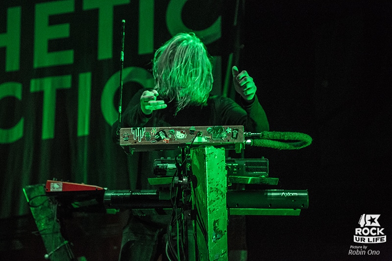 Changement d’ambiance avec AESTHETIC PERFECTION. On se rapproche cette fois du metalcore teinté d’électronique. Le trio américain est très dynamique sur scène. Et le chanteur Daniel Graves ne cesse de parcourir la scène.
