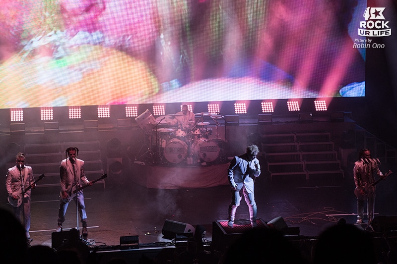 “Skills In Pills” retentit. Les membres de LINDEMANN, tous vêtus de blanc, prennent place sur scène. Le visuel des costumes et la mise en scène rappelle Kraftwerk.