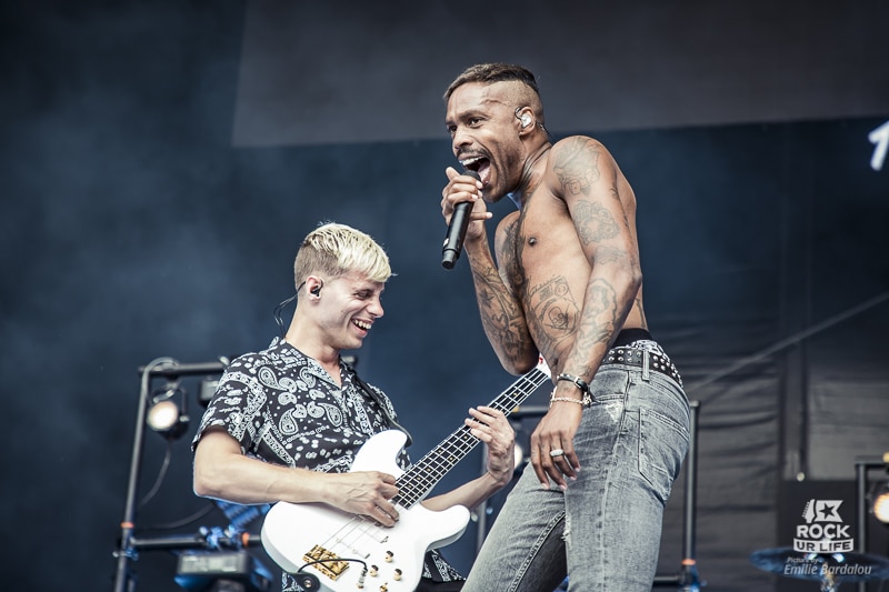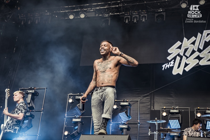 A partir de là, le set devient un joyeux bordel de la première jusqu’à la dernière seconde. Notamment grâce à l’inépuisable frontman qu’est Mat Bastard ! Ce dernier, qui se retrouve très vite torse nu comme à son habitude, s’amuse à faire participer le public d’une main de maître. Ainsi, il le fait déplacer dans tous les sens sur “Give Me Your Life”, il le coupe en deux ou même le fait asseoir puis sauter le plus haut possible pour le “concours du saut le plus haut de France”. Un concert de Skip The Use c’est physique, une vraie séance de cardio !