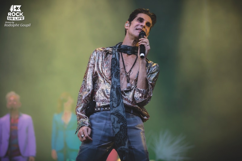 Résultat : le chanteur américain, accompagné de douze musiciens dont sa femme Etty, du Kind Heaven Orchestra, joue devant très peu d’audience. Quelle tristesse. Malgré un manque flagrant de public, Perry Farrell, soutenu par un écran géant en guise de fond de scène diffusant des images surréalistes, une scénographie herbale et un somptueux lightshow, offre une bonne prestation de son nouvel album solo “Pirate Punk Politician”. Une performance et mise en scène dignes d’une comédie musicale de Broadway ou d’un spectacle de cabaret. Et en mode BCGC s’il vous plait, la troupe étant en costume et robe de soirée pour le plaisir des yeux.