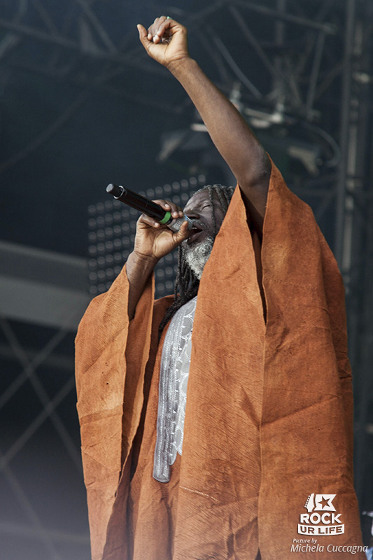 TIKEN JAH FAKOLY (Main Stage) – Sous la chaleur finalement de retour, le chanteur ivoirien de reggae entre en scène avec ses (très) nombreux musiciens en choristes. L’artiste frappe fort avec des textes engagés et dénonciateurs, réussissant à convaincre largement la foule.